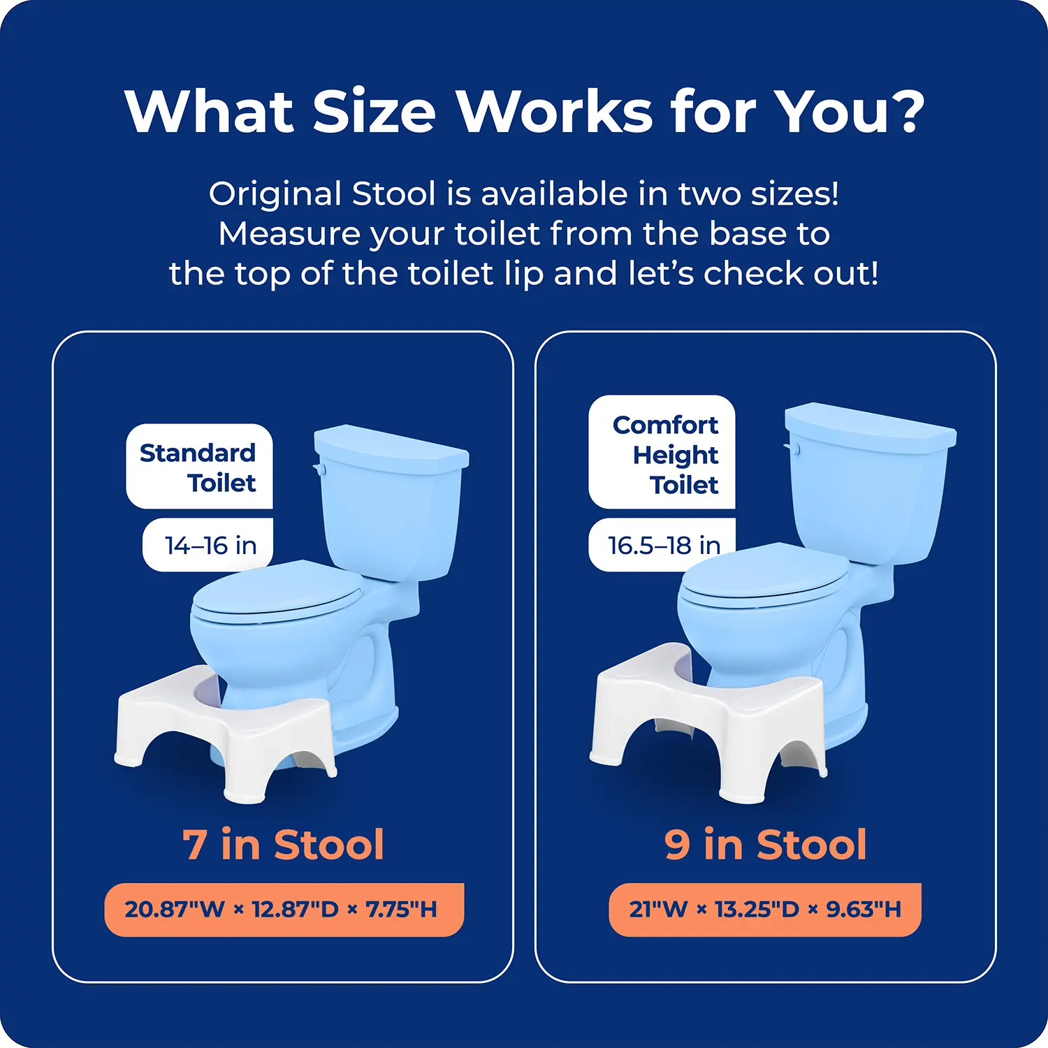Just gotta go? We feel you. This 9” toilet stool is ready to support your feet and legs while you poop. It repositions your body to make pooping easier. There are no nuts, bolts or difficult instructions involved since it is one piece. Just slide it under the toilet bowl, have a seat, position your feet, then go!