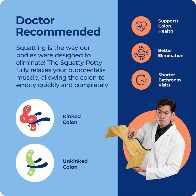 There is a better way to poop! Human bodies perform more efficiently if we squat when we poop, which will unkink your colon. Our toilet stools support your legs at the proper angle, which creates a squat (legs at the proper angle: 35°) while you sit comfortably on the toilet seat.