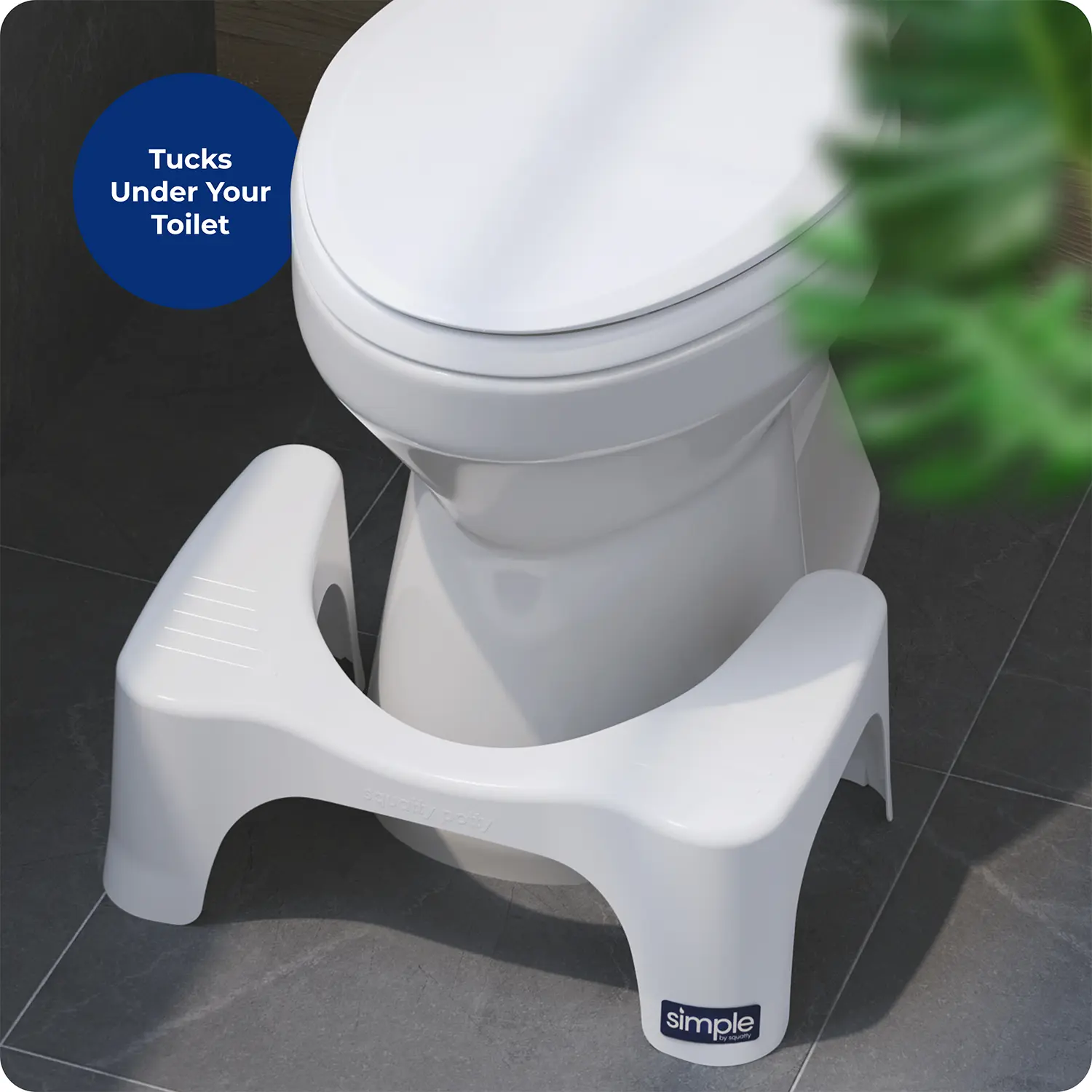 Just gotta go? We feel you. This Simple stool is ready to support your feet and legs while you poop. It repositions your body to make pooping easier. There are no nuts, bolts or difficult instructions involved since it is one piece. Just slide it under the toilet bowl, have a seat, position your feet, then go!