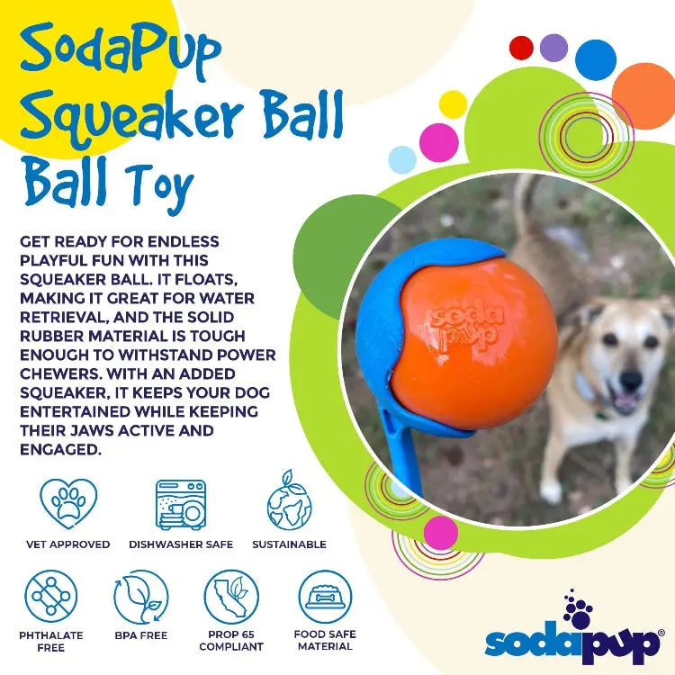 My dog Jinx loves this ball! It’s bouncy and floats! He loves to chew on it! It’s made from safe materials! Thank you @sodapup!