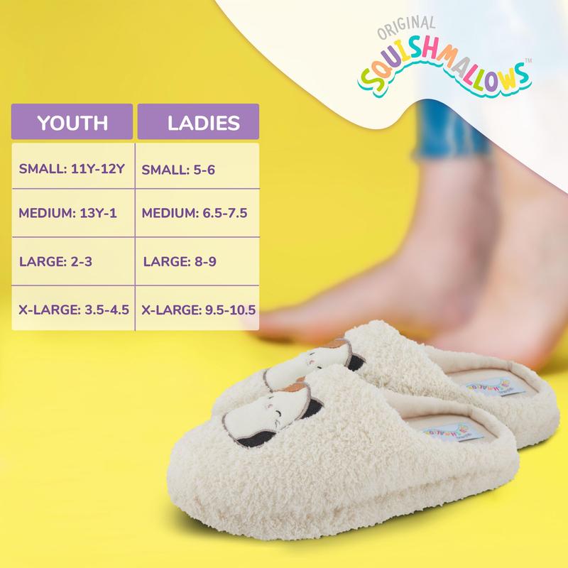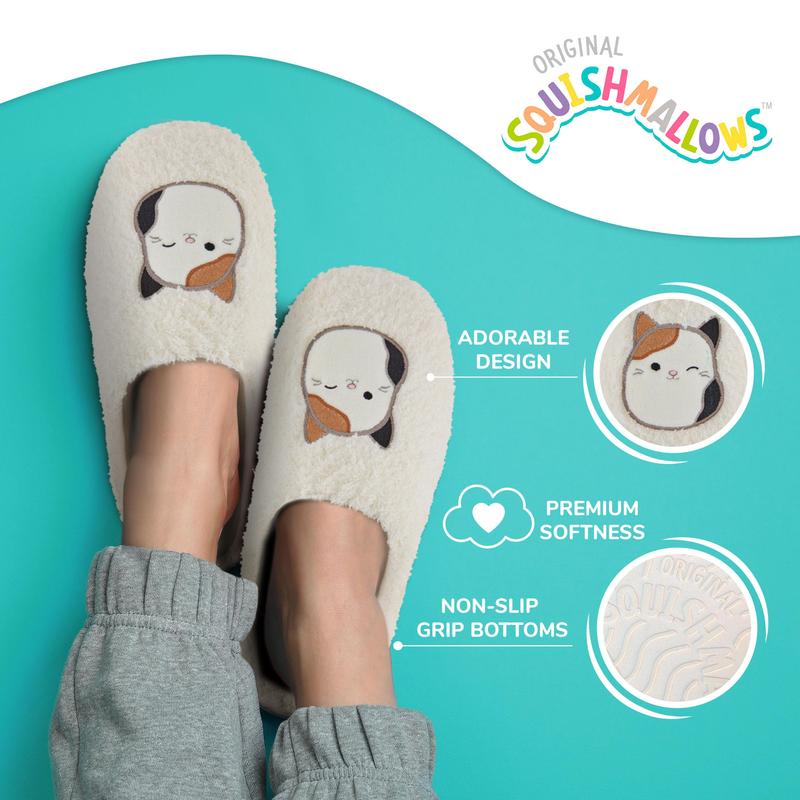 Step into a world of coziness and delight with our all-new smiley face slippers by Squishmallows. These aren't just any slippers – they're a huggable, lovable experience for your feet!
