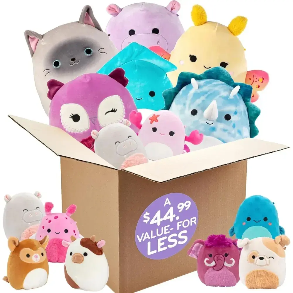 The Squishmallows Mystery One 10" & Two 5" 3-Squish Value Pack brings excitement and adorable variety with one jumbo 10-inch Squishmallow and two mini 5-inch plush surprises in every box. This official Jazwares set delivers incredible value, featuring the signature ultra-soft filling, charming embroidered features, and lovable personalities that make Squishmallows so collectible. Perfect as a gift for kids, girls, and boys, this mystery trio adds unboxing fun while letting fans grow their Squishmallows family with both big and small cuddly companions. Whether for snuggles, display, or imaginative play, this mixed-size bundle offers endless squishy comfort and joy.