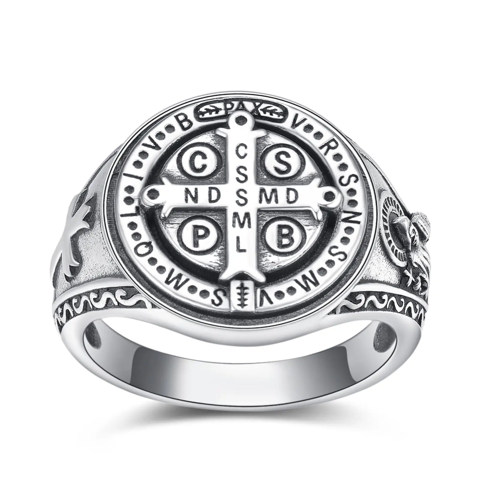 925 Sterling Silver St Benedict Rings Exorcism Saint Benedict Ring Medalla de San Benito Jewelry Protection Religious Gifts for Men Rings TikTokShopBlackFriday