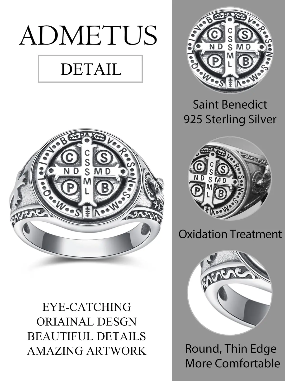 Saint Benedict Exorcism Medal Ring #saintbenedict #saintbenedictsmedal #exorcism #menjewelry #statementjewelry #giftforhim #925sterlingsilver