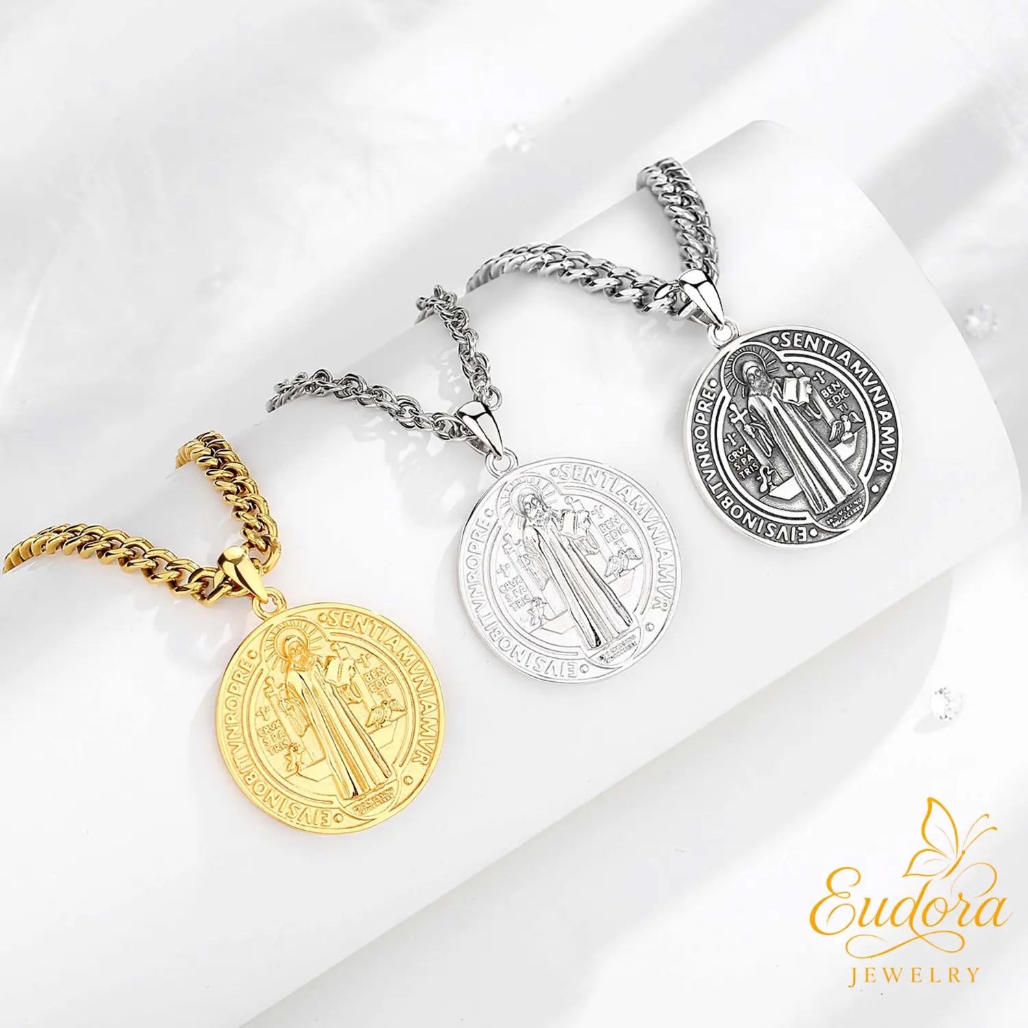 Oxidized Round Blue Accent St. Benedict With NDSMD