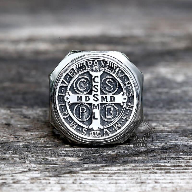 5. GTHIC St. Benedict Medal Stainless Steel Ring for Men Women Statement Jewelry Fashion Accessories