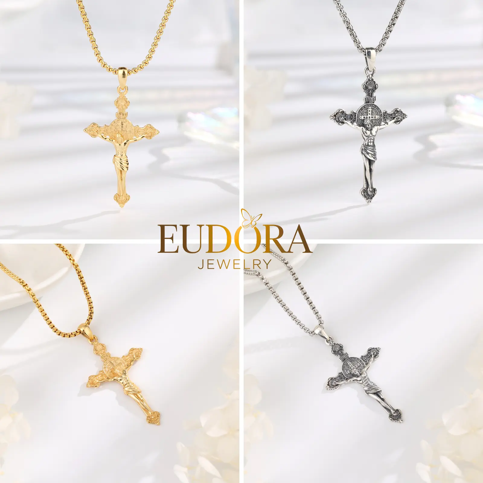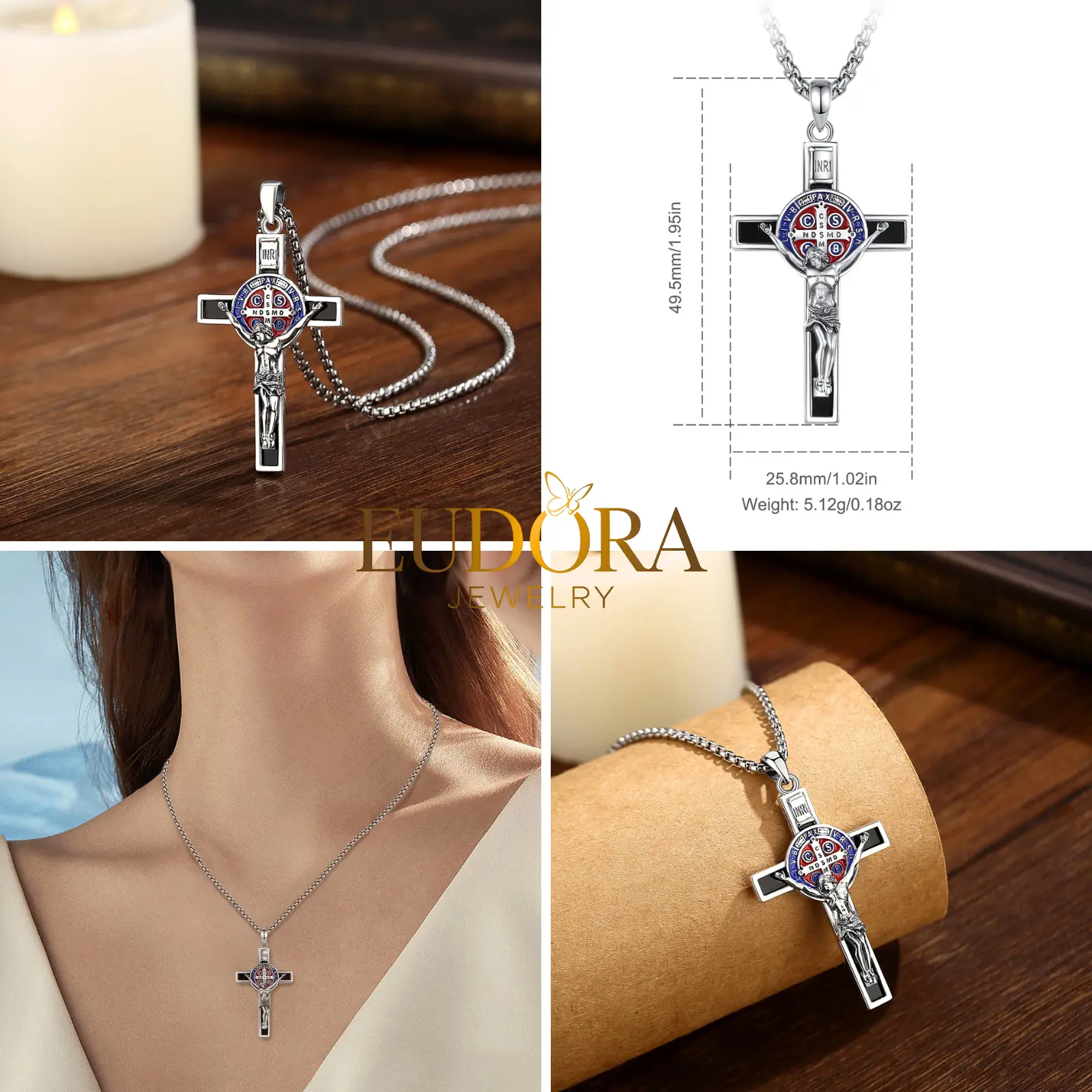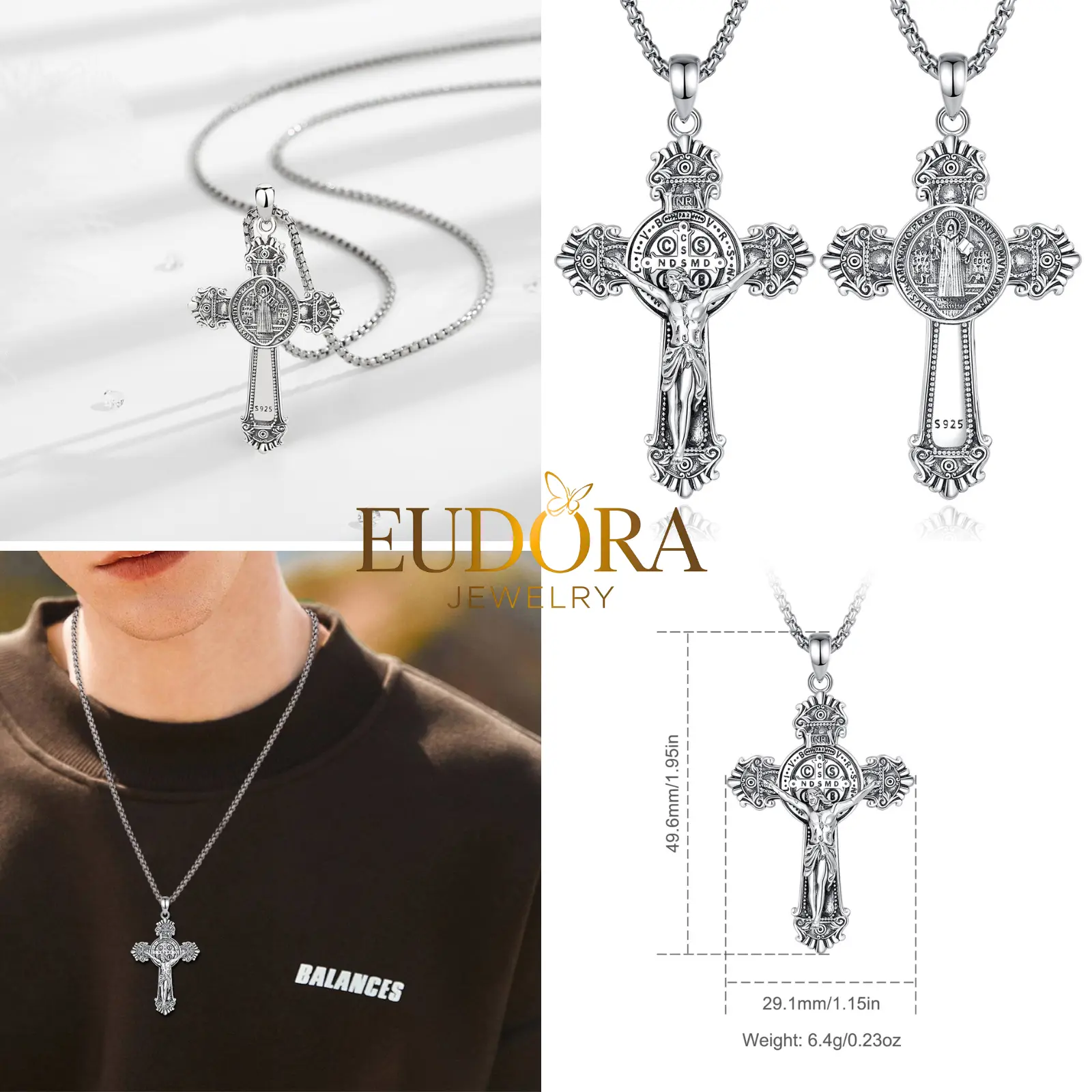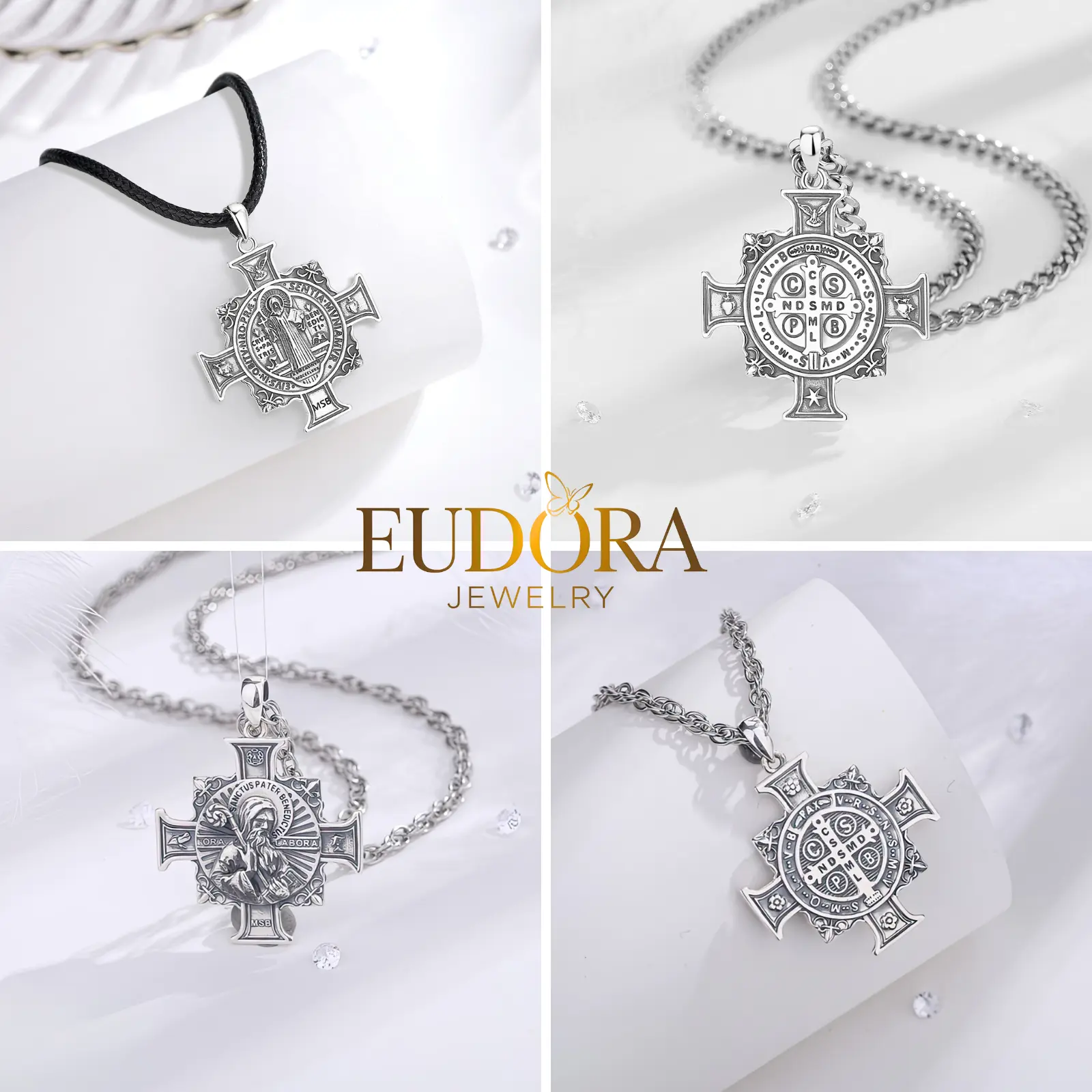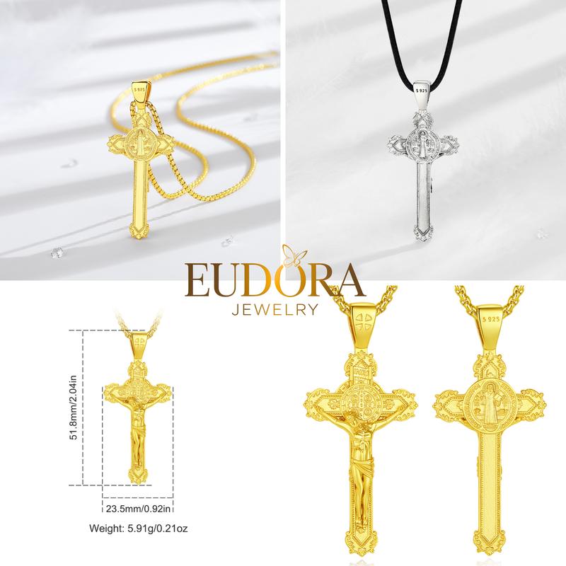Embrace a deeper connection to your faith with the EUDORA 925 Sterling Silver St. Benedict Medal Pendant Necklace Series.
