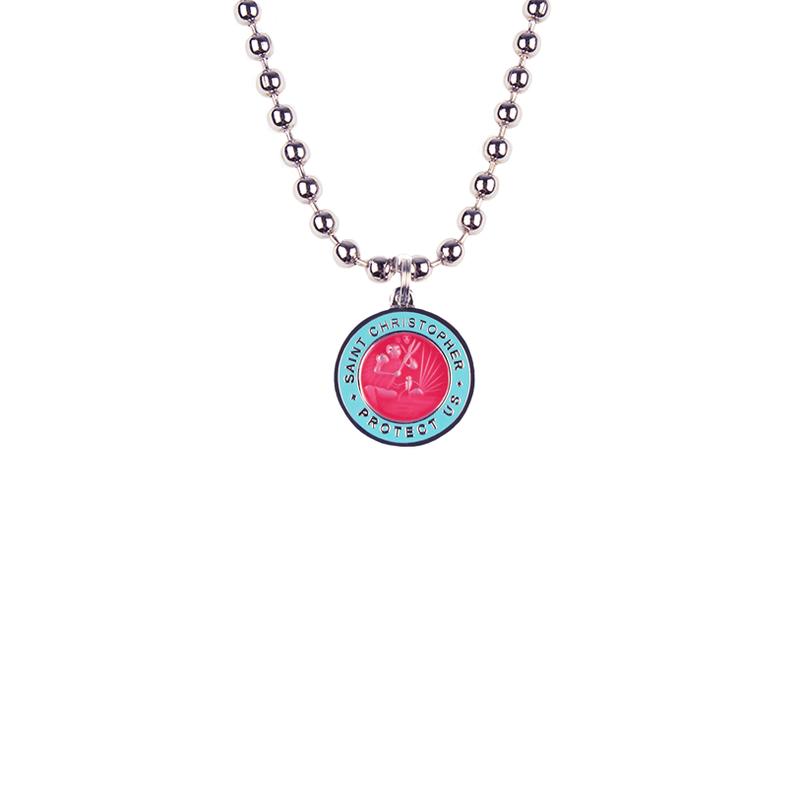 5. St. Christopher Necklace - Hot Pink / Baby Blue