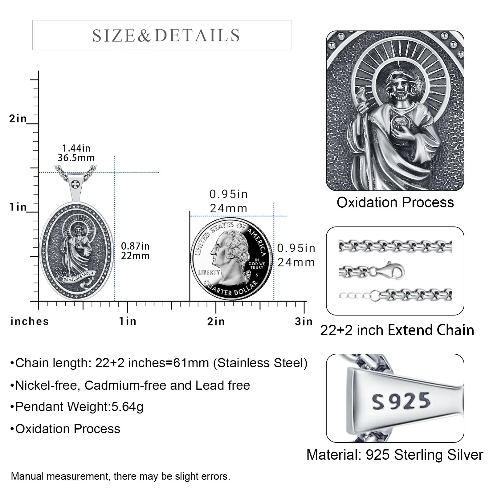 ·Meaningful St Jude Medal: Features detailed San Judas Tadeo design—patron saint of lost causes, symbolizing hope in despair and steadfast faith ; clear engraving highlights sacredness, ideal as talisman amulet.