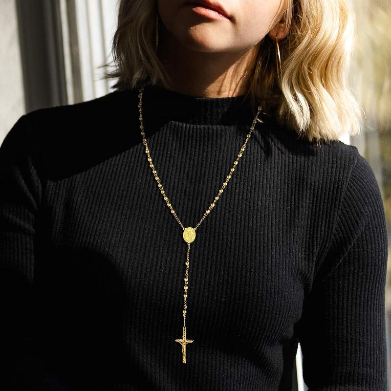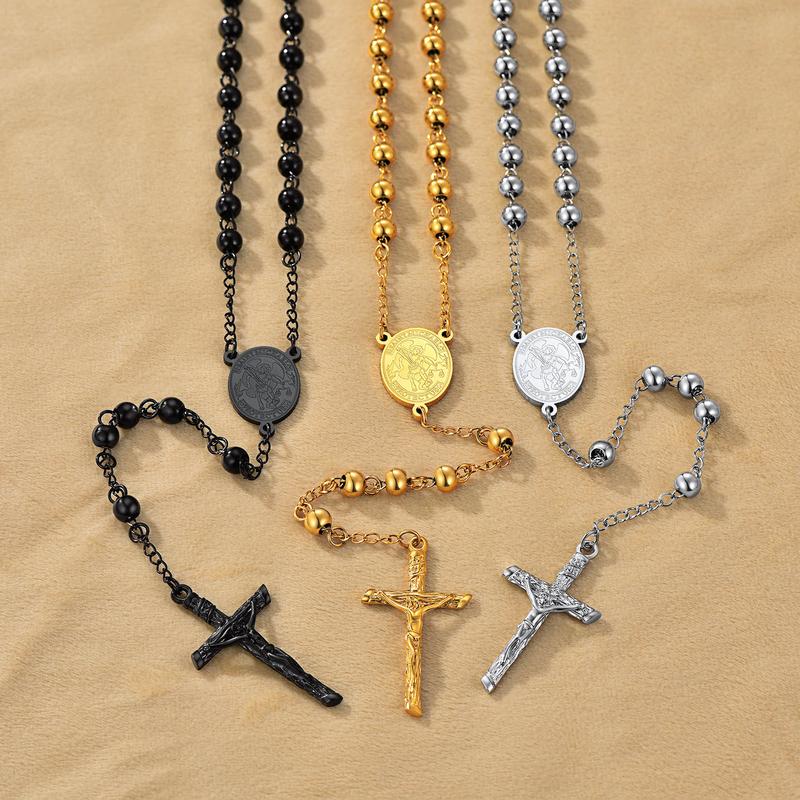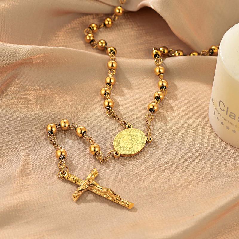 FindChic St Michael Rosary Bead Cross Necklace Stainless Steel Christian Praying Rosary Y Necklace Jewelry Unisex For Women Men