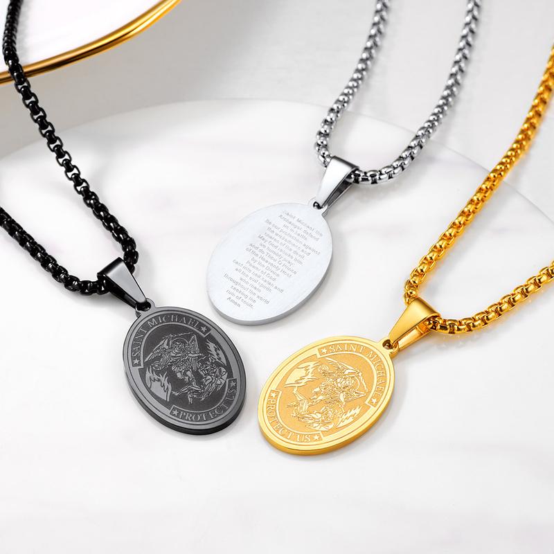 PROSTEEL St.Michael Shield Pendant Necklace Stainless Steel The Archangel Necklaces Jewelry Unisex For Men Women with Gift BoxPROSTEEL St.Michael Shield Pendant Necklace Stainless Steel The Archangel Necklaces Jewelry Unisex For Men Women with Gift BoxPROSTEEL St.Michael Shield Pendant Necklace Stainless Steel The Archangel Necklaces Jewelry Unisex For Men Women with Gift Box