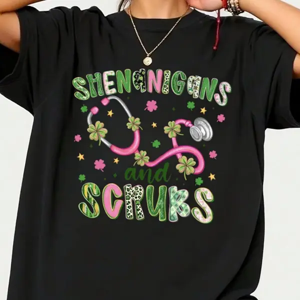 Soft cotton St. Patrick's Day nurse themed top with festive print, comfortable and stylish, ideal gift for nursing lovers, family and friends.