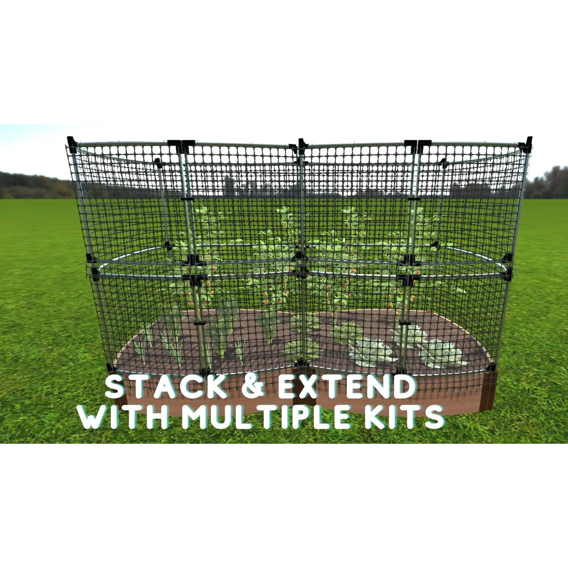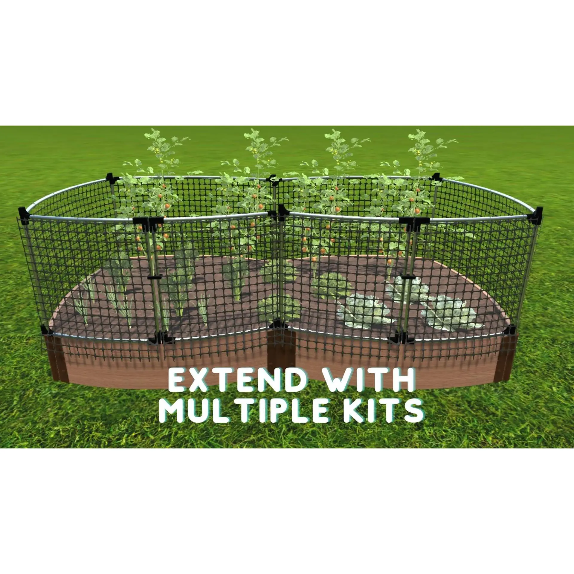 Our curved animal barrier kit can be installed over any Frame it All curved board and can connect to our straight 4ft & 2ft animal barrier kit too! Each of these kits will have a fence section that stands 2ft on top of the height of your raised garden bed. By combining multiple kits you can fence off nearly any garden design you can think of. If you’re assembling on a terraced design, use our Terrace Connectors to connect the animal barrier across joints of different heights.