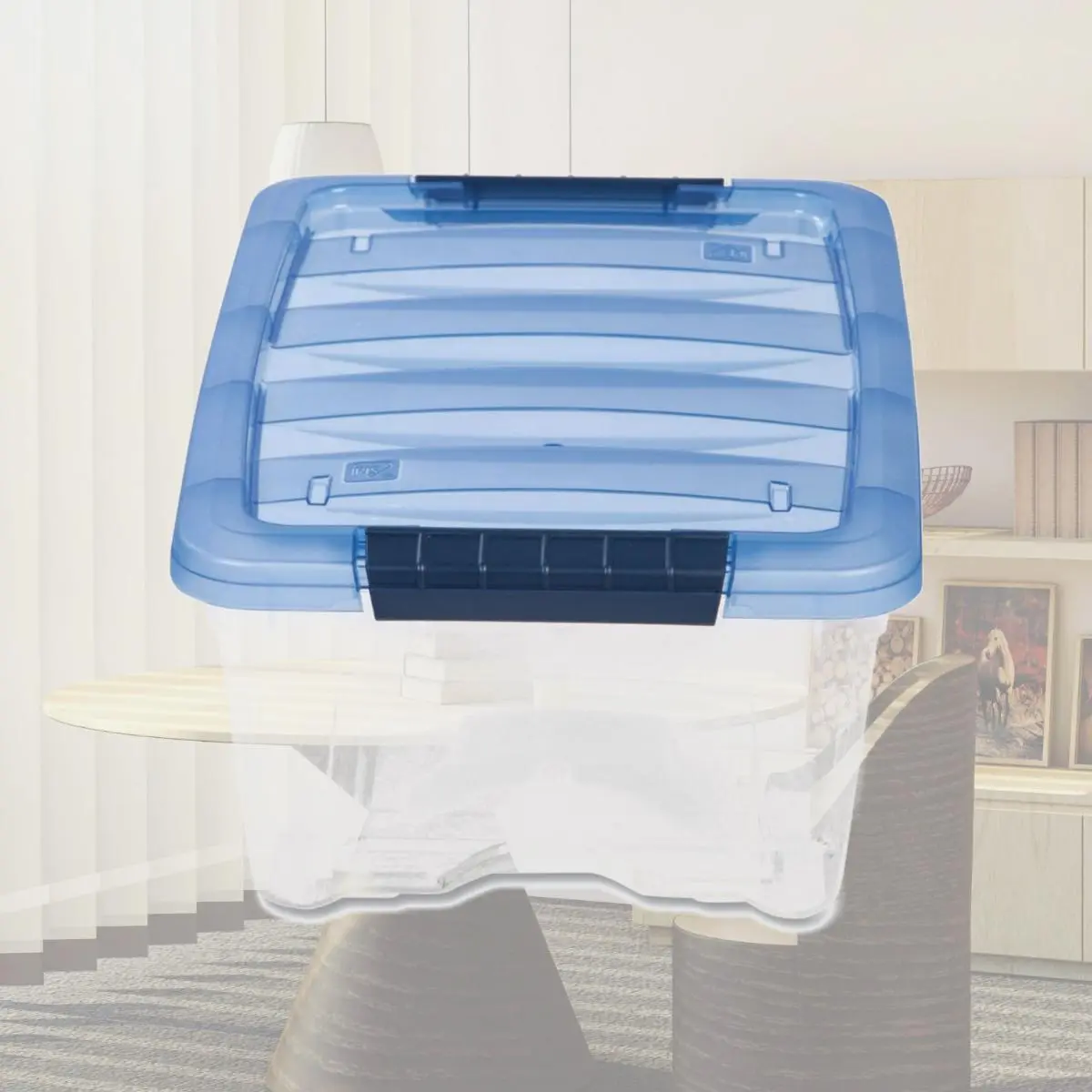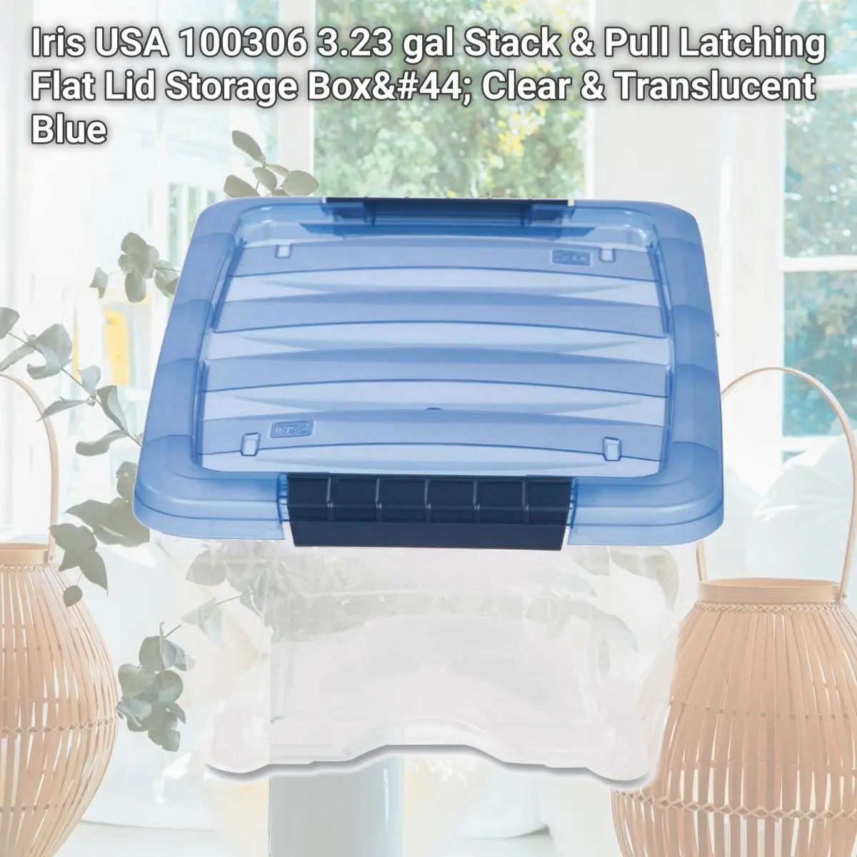 Iris USA 3.23 gal Stack & Pull Latching Flat Lid Storage Box, Clear & Translucent Blue