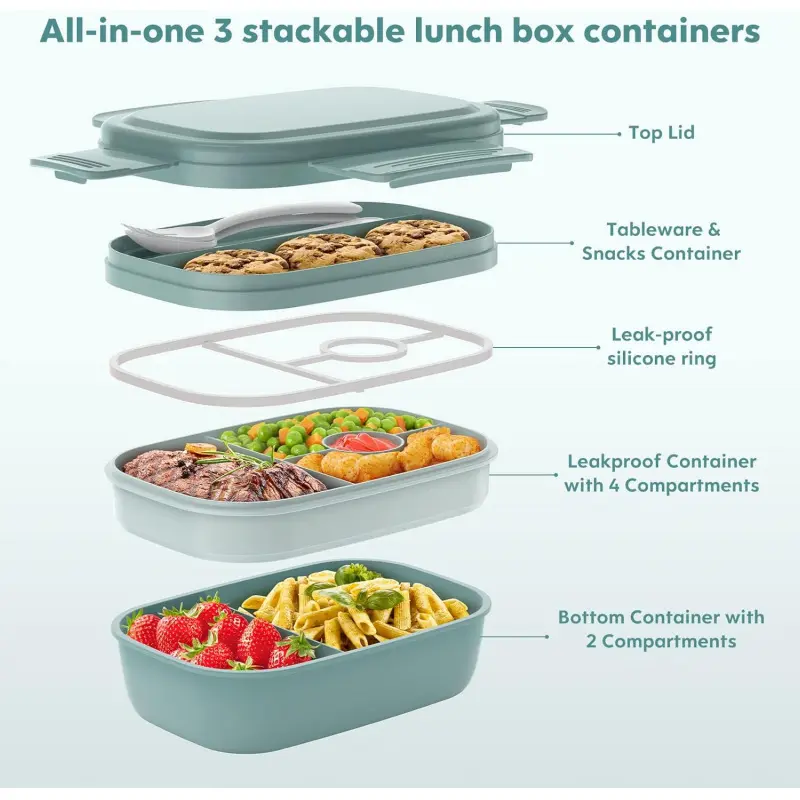 ·Leak-proof - The silicone molded lid of the bento box fits tightly with the food tray, forming a secure seal that keeps the food compartments separate