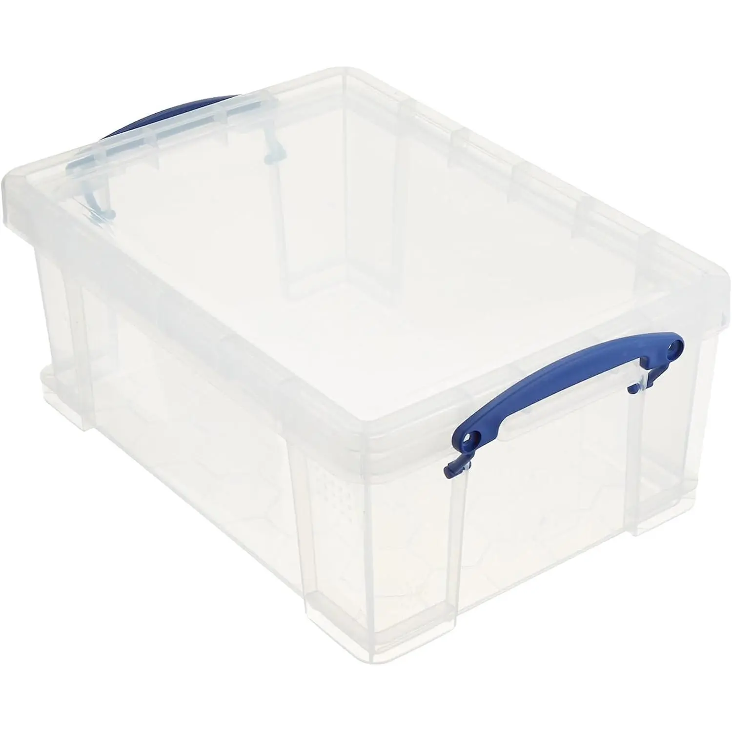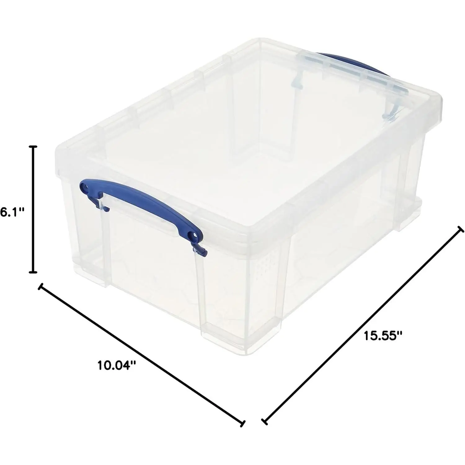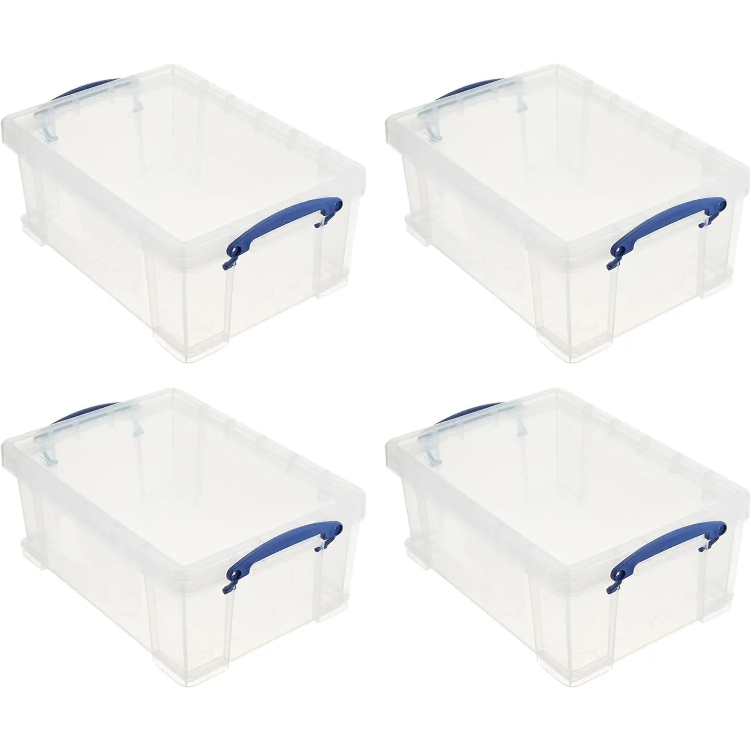 Really Useful Box Stackable 9 Liter Plastic Storage Container Bin with Snap Lid and Built-In Clip Lock Handles for Home & Office Organization (4 Pack)