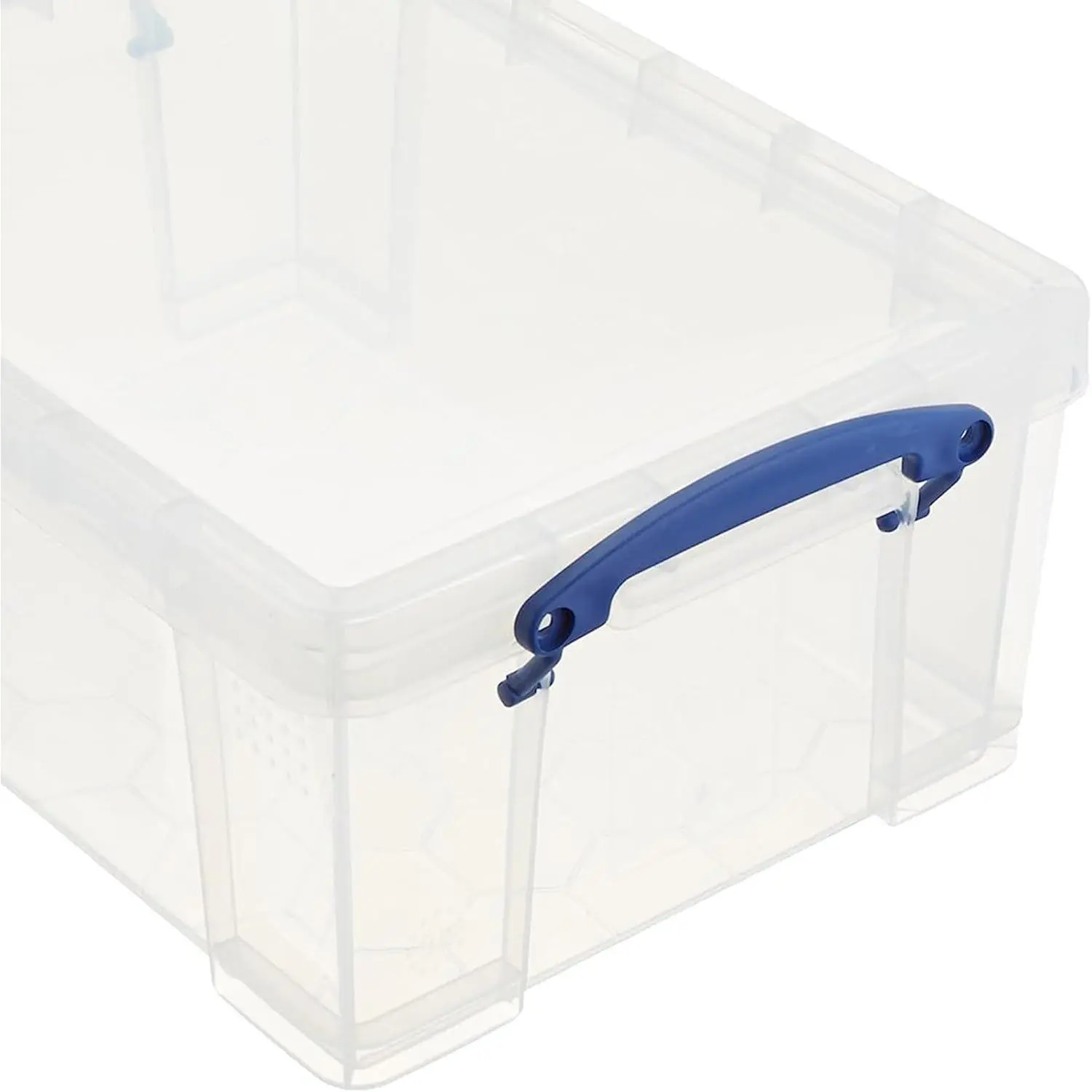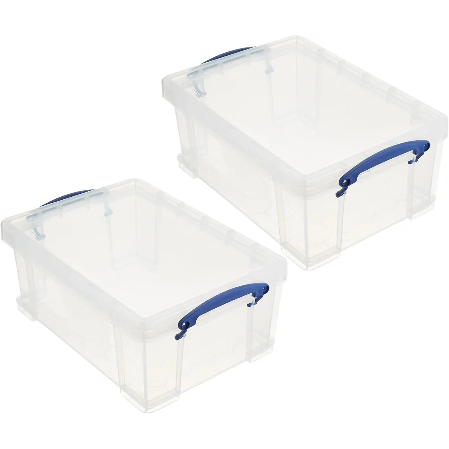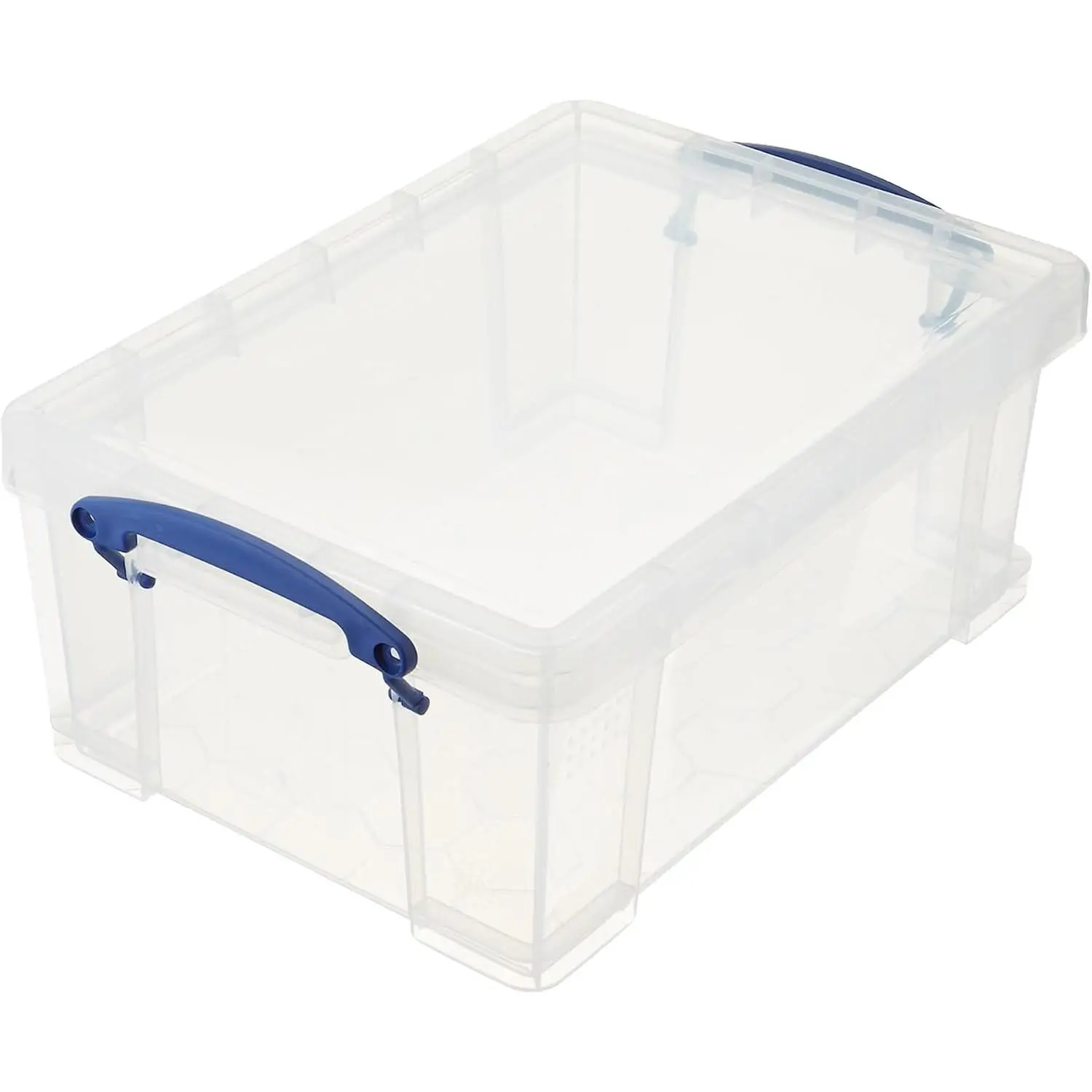 Really Useful Box Stackable 9 Liter Plastic Storage Container Bin with Snap Lid and Built-In Clip Lock Handles for Home & Office Organization (4 Pack)