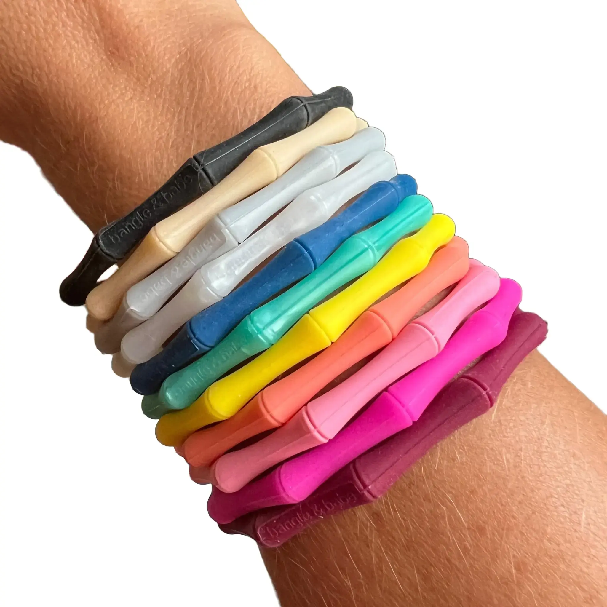 Stackable Waterproof Bamboo Bangles - Flexible Silicone Bracelets for Summer Dainty Jewelry Trendy Jewellery Accessories 2.33 Inch Diameter Gift Stocking Stuffers