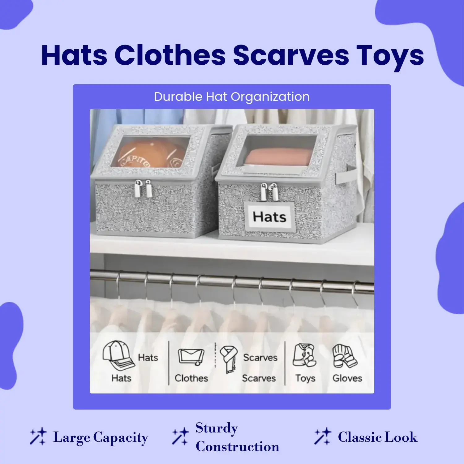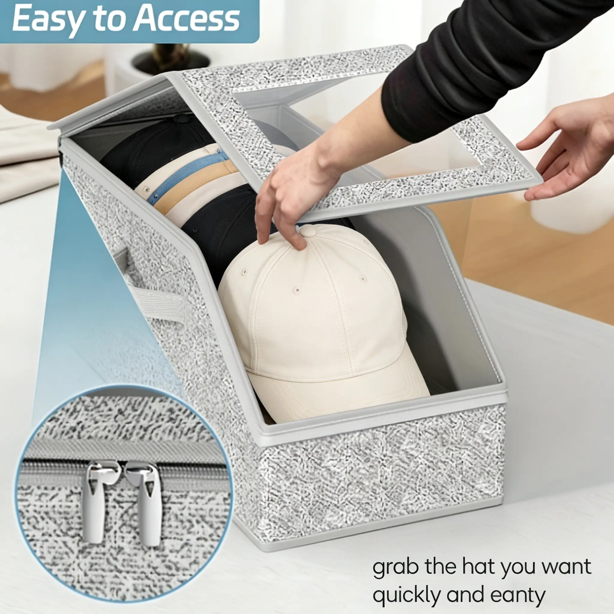 Stackable Baseball Cap Storage Box for 24 Caps, Organizer for Hats, Durable Cardboard Organizer for Men, Classic Style Closet Organizer