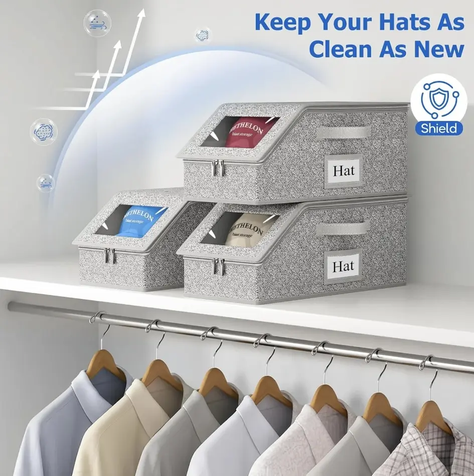 【Stackable Design】Each hat organizer box comes with a sturdy base that ensures stacking and not easy to tip. Maximizing the closet, wardrobe,saving space.
