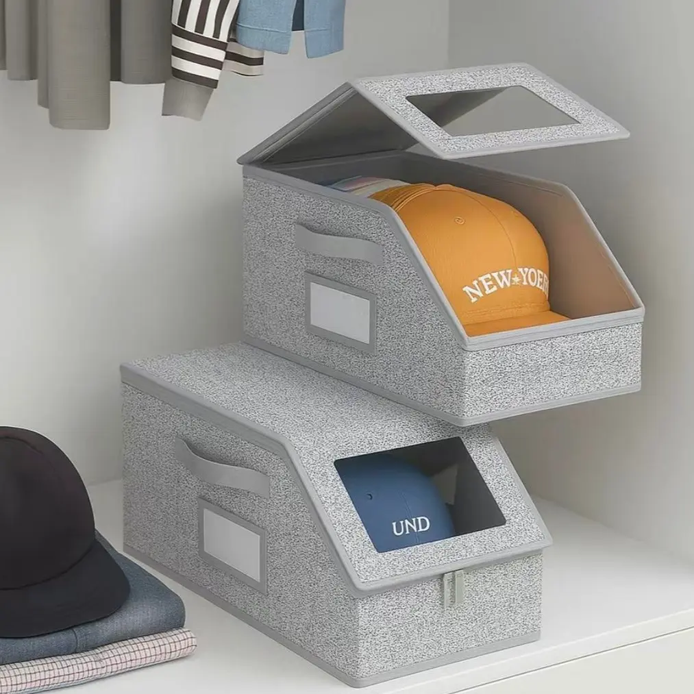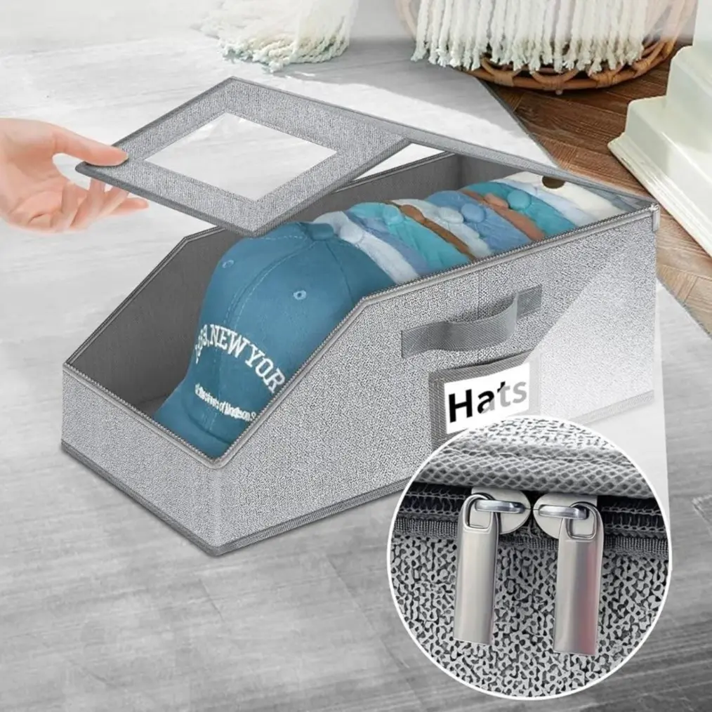 【Wide Application】Hat organizer box can also convenient to store your clothing,books,scarves and more, side name card window for easy identification, can be stored in the wardrobe ,living room or car trunk.