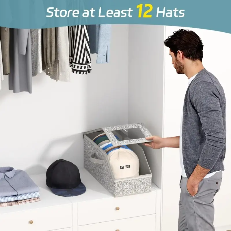 1pc large capacity baseball cap storage box, saves space, easy to access and neatly arranged. Suitable for wardrobes, bedrooms, and is a must-have household storage item for travel preparations, dormitory seasonal wardrobe rotation.