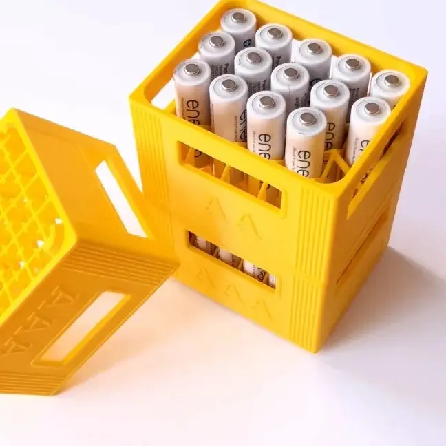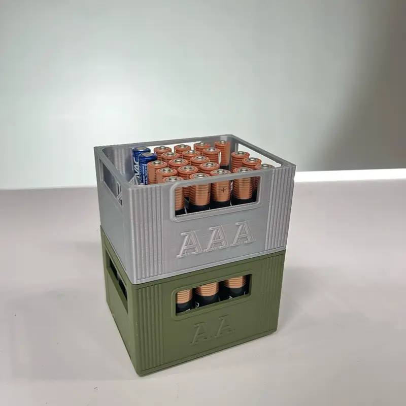 Simply place your AA and AAA batteries into these crates. The stackable feature ensures they fit neatly on top of each other, saving space. Ideal for homes, offices, or any setting where battery organization is necessary. Keep your batteries tidy and accessible with this practical solution.