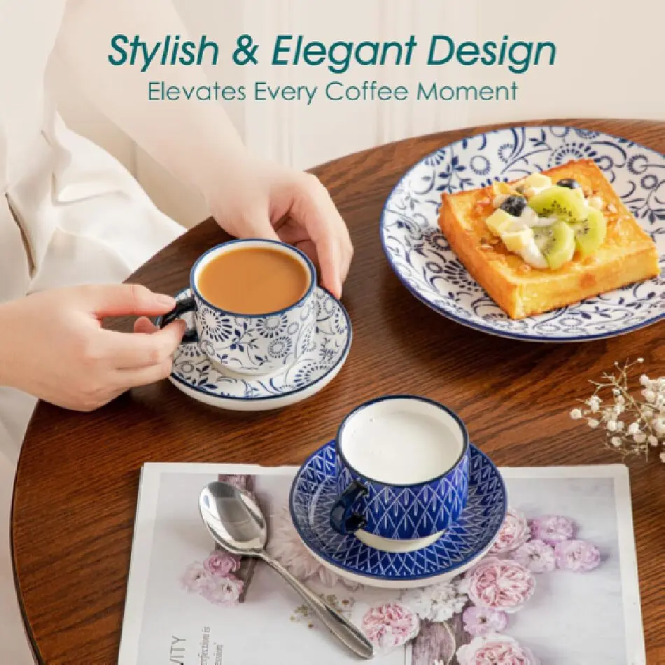 【Safe Material & Gift-Ready】This vintage tea cups is made of lead-free, cadmium-free, non-toxic porcelain material, ensuring safe daily use and compatibility with most coffee machines. Each cup features a classic floral pattern, making it an ideal gift for holidays or special occasions