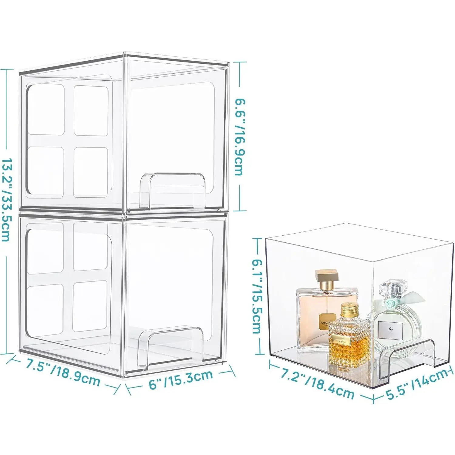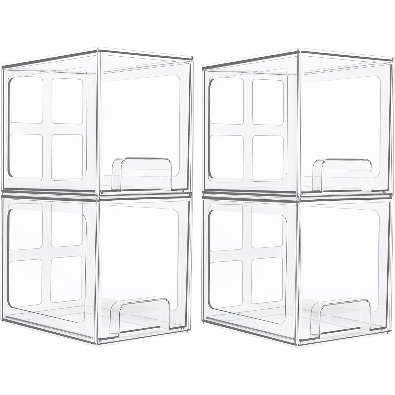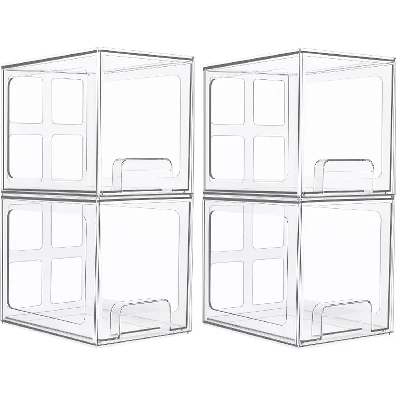 4 Pack Stackable Storage Drawers, 6.6''Tall Acrylic Bathroom Makeup Organizers,Clear Plastic Drawers For Vanity, Undersink, Kitchen Cabinet,Pantry Organization and Storage
