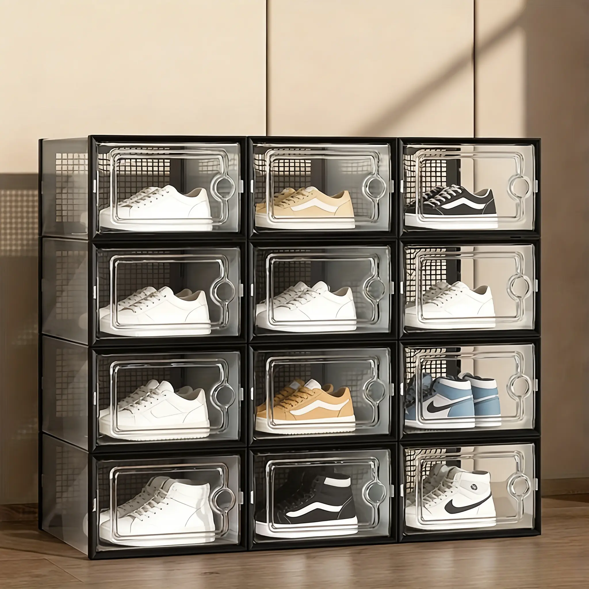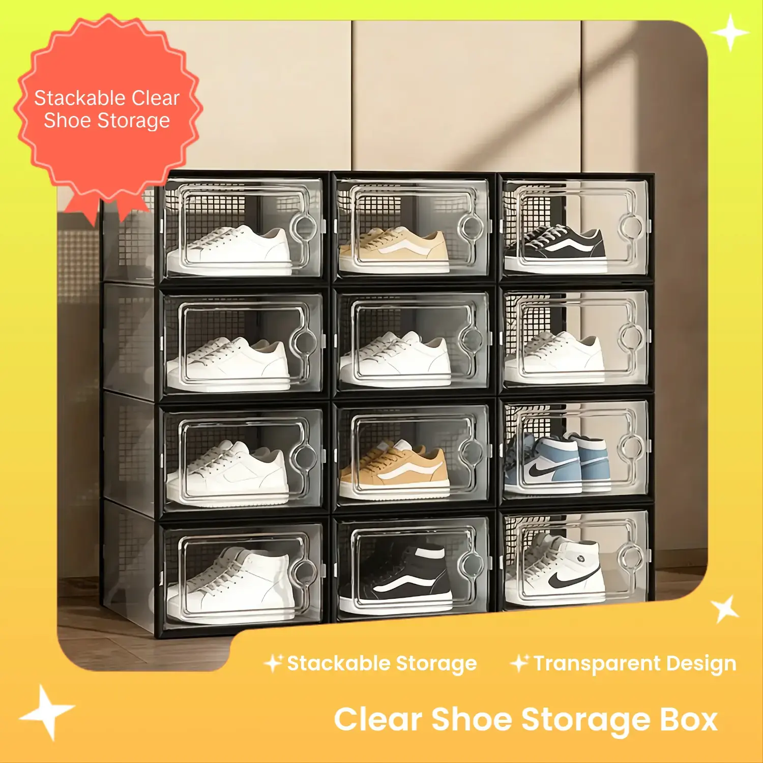33.5x23x14cm Shoe Organizer Boxes 24 Pack Stackable Clear Shoe Display Case Drawer Cabinet Clear Stackable Drawers