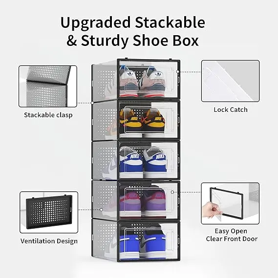 Upgrade your home organization with these sleek and practical black-framed shoe storage bins. Perfect for sneaker collectors, busy households, or anyone seeking an elegant solution to clutter!
