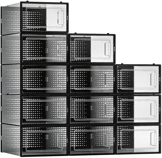 12-Pack Clear Plastic Stackable Shoe Storage Bins