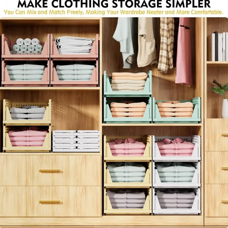 1 Pack Stackable Closet Storage Bins Multi Functional Foldable Wardrobe Organizer for Bathroom Kitchen Laundry Room Space Saving Clothes Storage Drawer Organizing