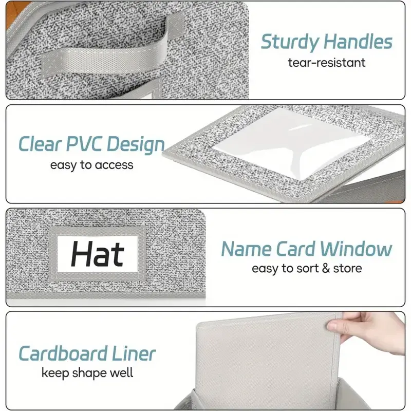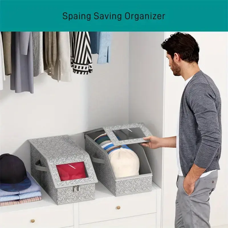 ·【Versatile Uses】: Hat organizer box can also convenient to store your miscellaneous items such as clothing, bedding, books, toys, scarves and more, side name card window for easy identification, can be stored in the bedroom, living room, wardrobe or car trunk.