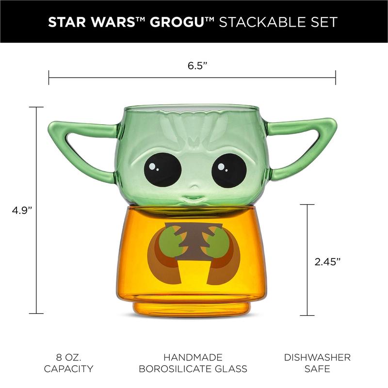 Bring the bounty home! Our Star Wars™ Grogu™ stackable glasses are as versatile as they are adorable! The perfect glassware set for any Star Wars™ fan, whether you fill one cup with snacks and the other your favorite drink, or simply as a collectible on a shelf! Our Star Wars™ Stackable Character Collection includes 5 iconic characters, so choose your favorite or collect them all!