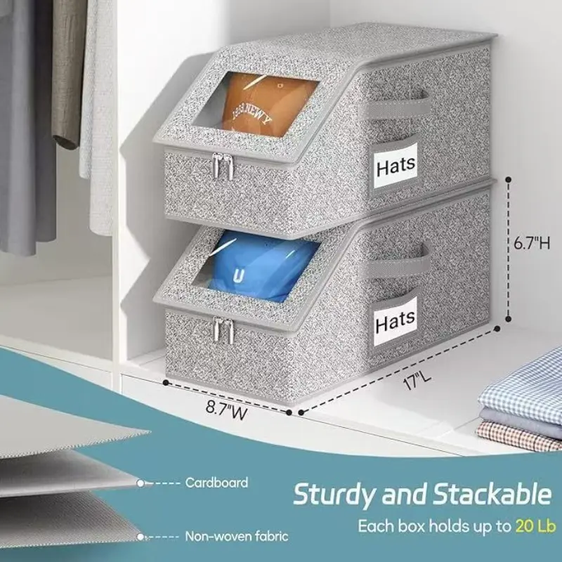 【Stackable Storage】: This storage box allows easy stacking, optimizing your closet space while keeping your baseball caps neatly organized.