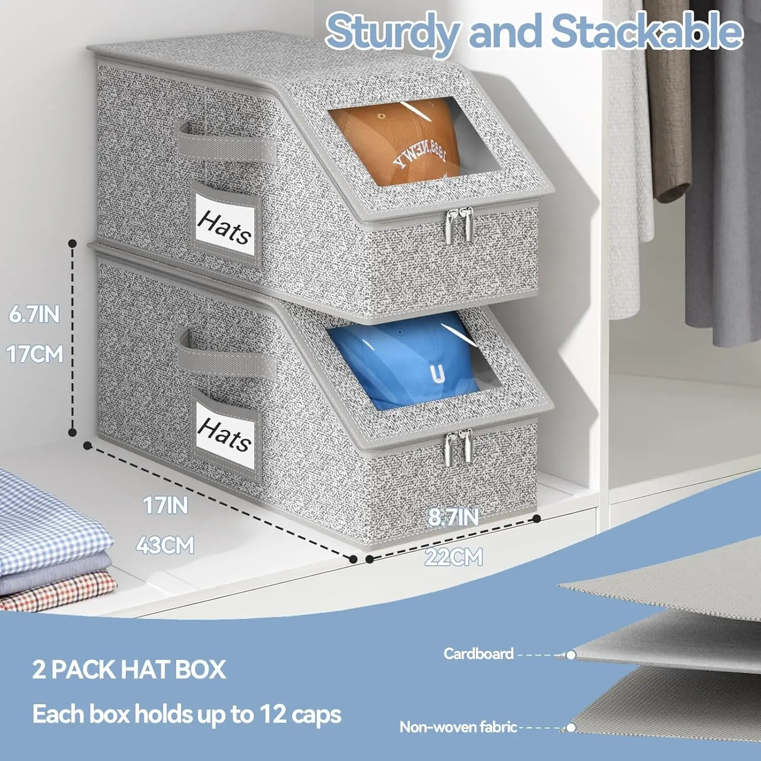Stackable Hat Storage Boxes for Baseball Caps, Large Cap Storage ,Classic Style, Wardrobe Organizer,mens gifts,hat