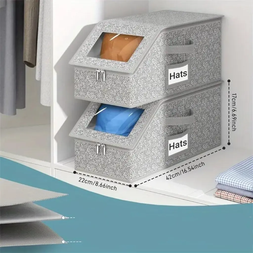 Stackable Hat Storage Boxes for Baseball Caps, Holds Up to 24 Hats, Durable Cardboard Box for Men, Classic Style, Wardrobe Organizer