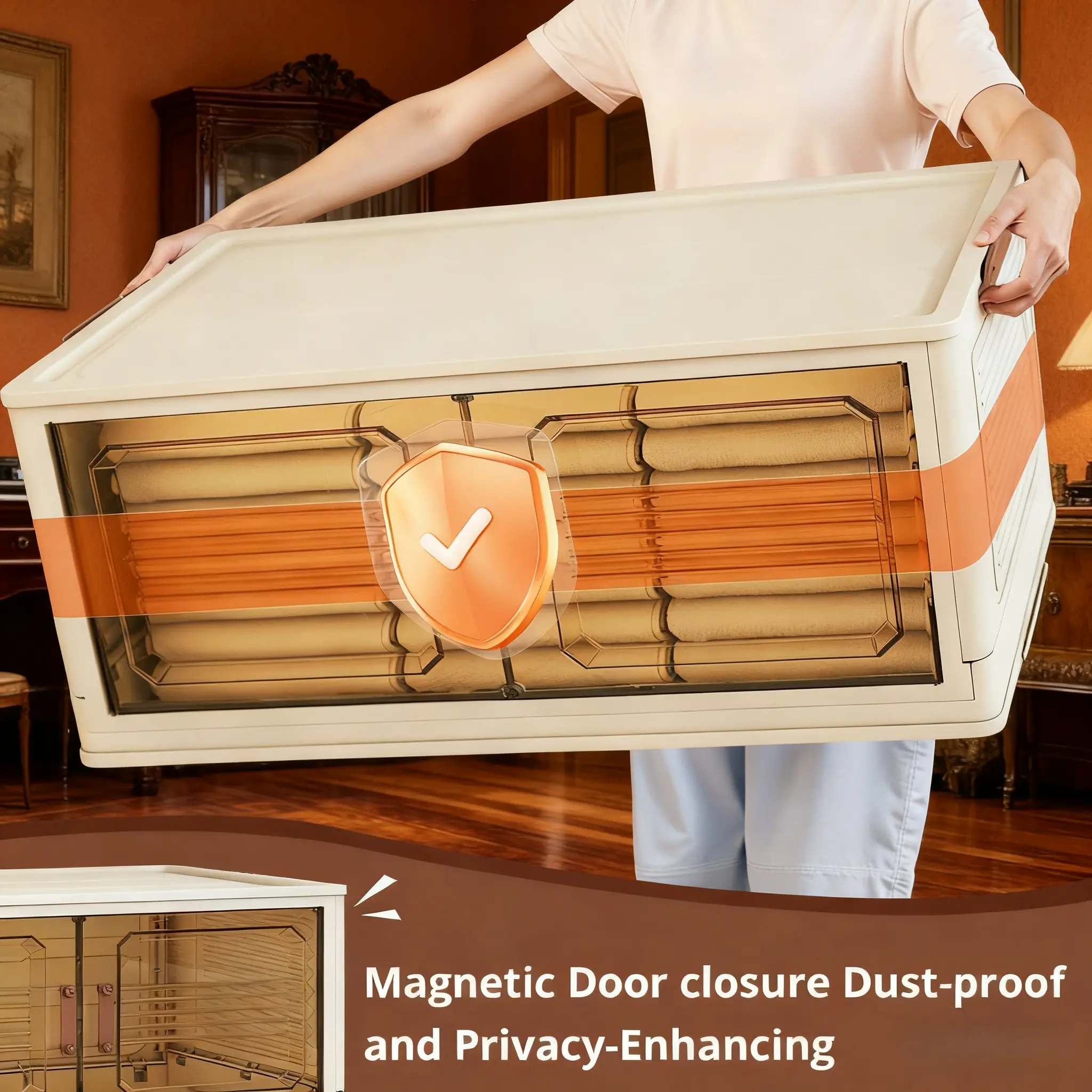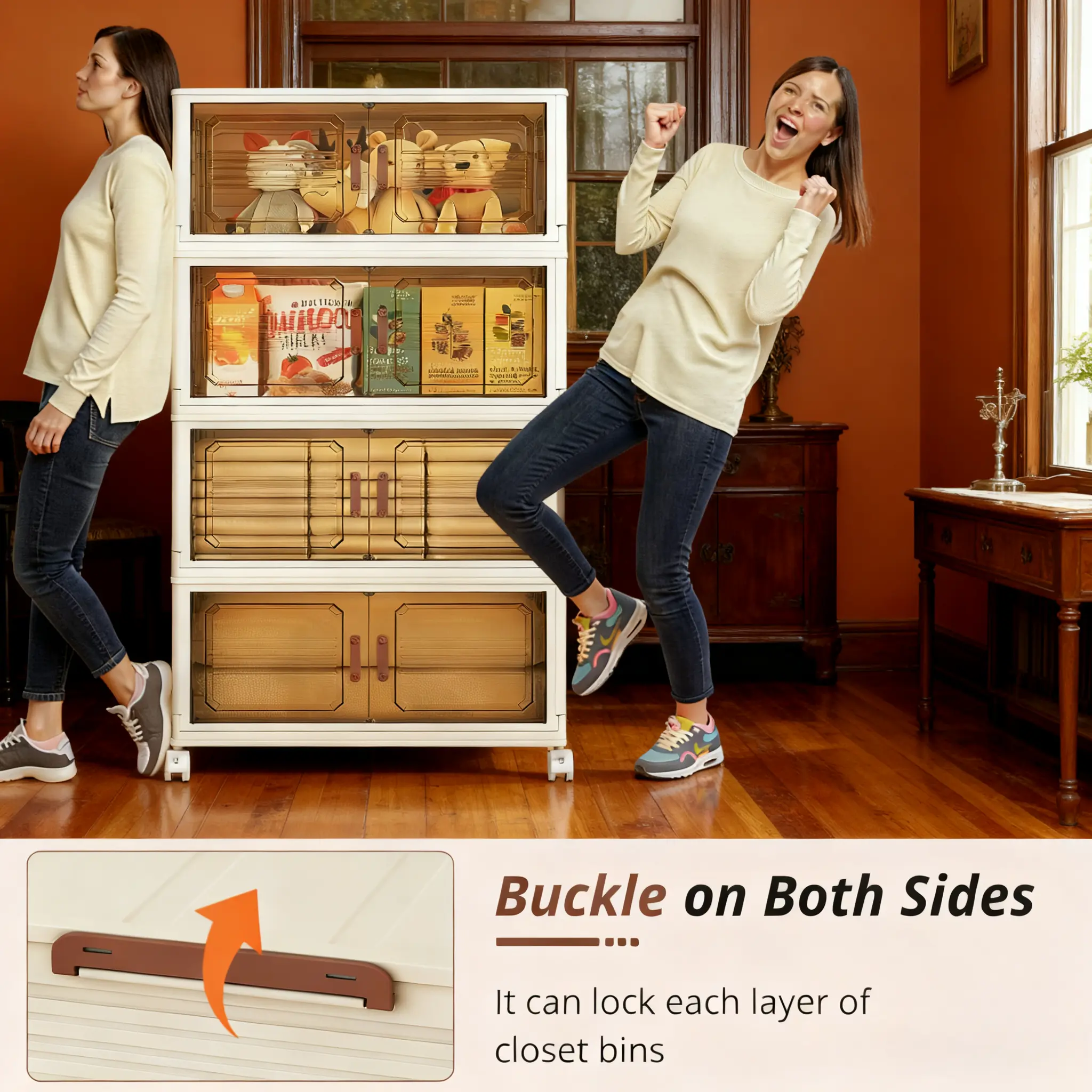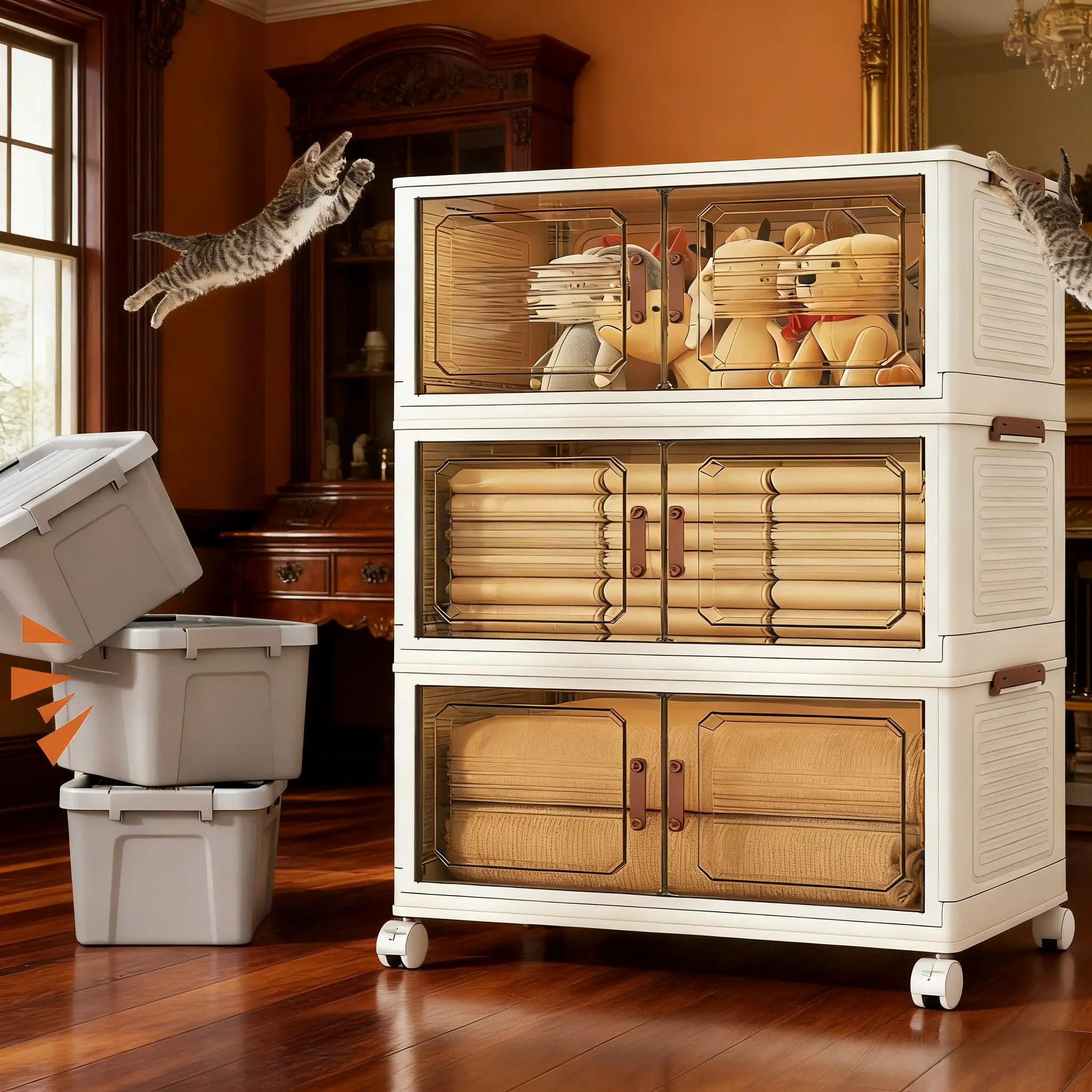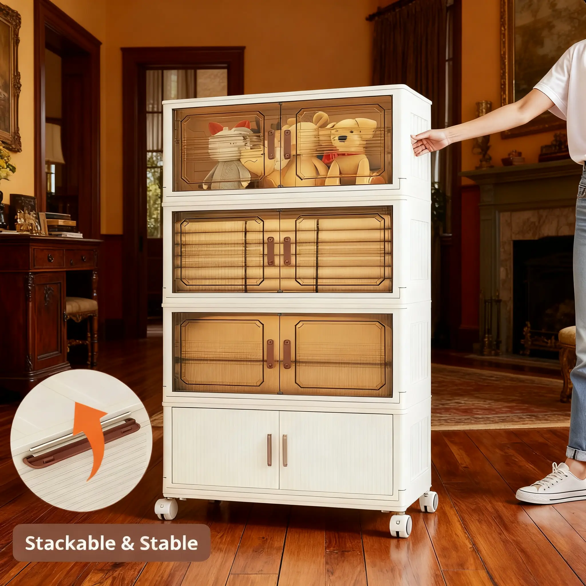 ·Features: Foldable Storage Bins Magnetic Doors Lockable Wheels