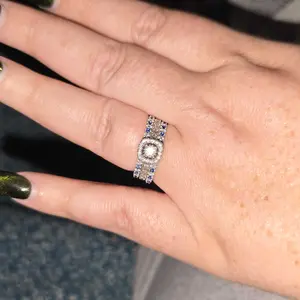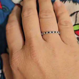 I’ve always loved blue sapphire so I wanted to incorporate it in to my wedding set somehow. I switched this $10 ring for my original wedding band and I love it. I wear it 24/7 and it is still 100% after a week. I even soaked it all night twice for cleaning. I guess time will tell but I’m happy now!