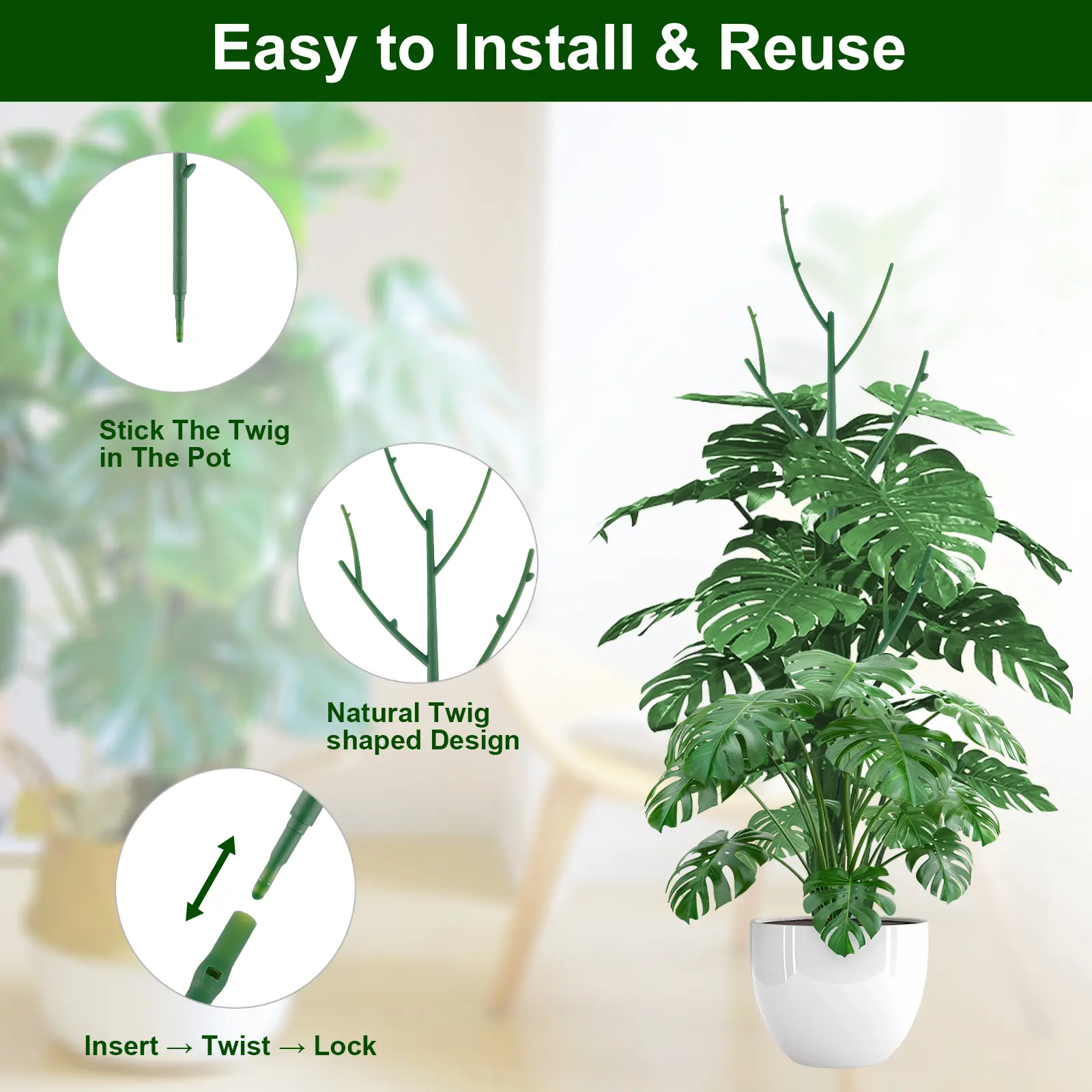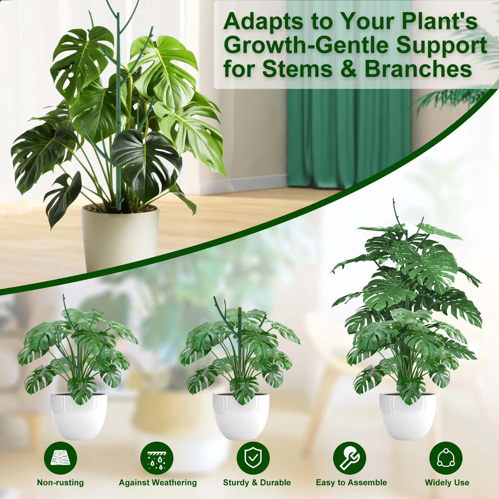 ćBlends Naturally with Plantsć The slim green design seamlessly blends with your foliage, offering plant support for indoor plants and outdoor gardens. Ideal as garden accessories that wonāt distract from your plantās beauty.