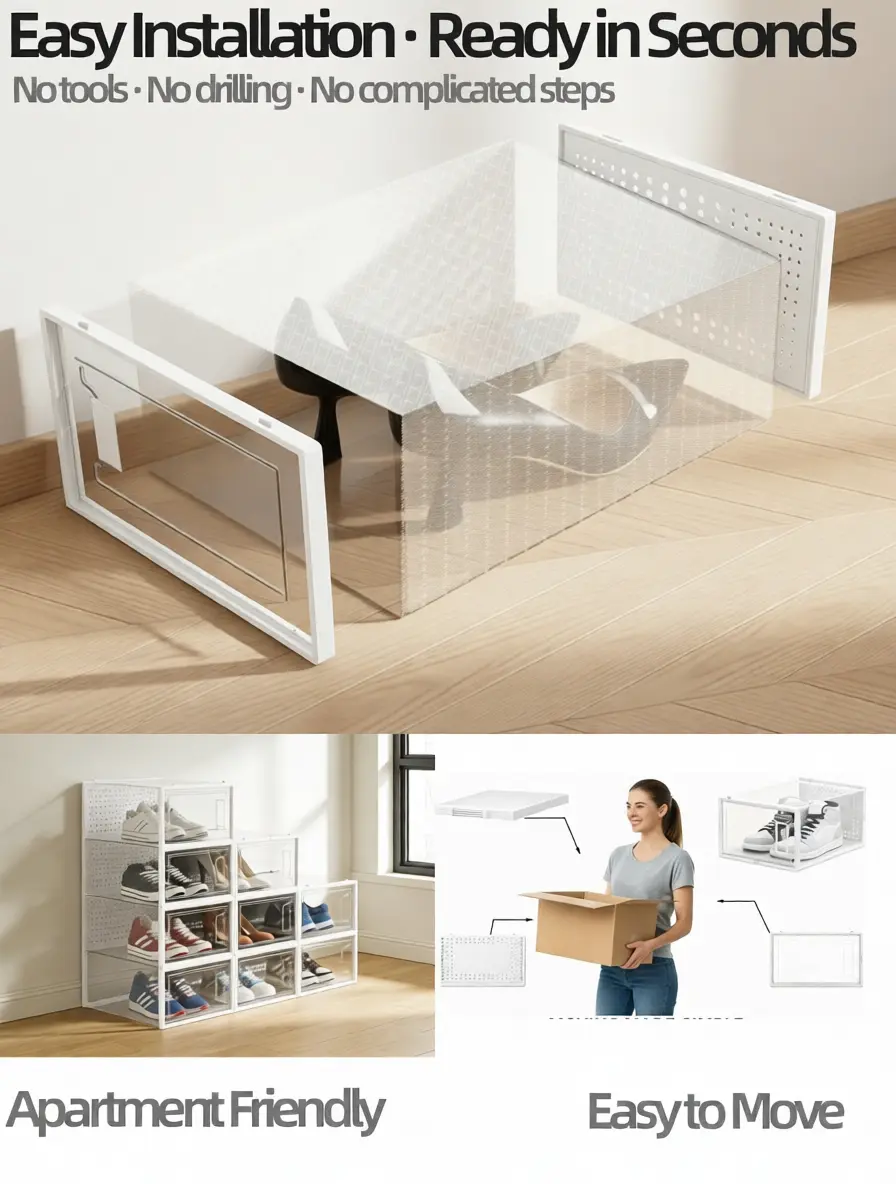 Made from high-transparency, thickened premium plastic, you can clearly identify every pair inside without opening the lid. This allows for quick selection and showcases your prized sneaker collection like a display case, offering both protection and visual appeal.