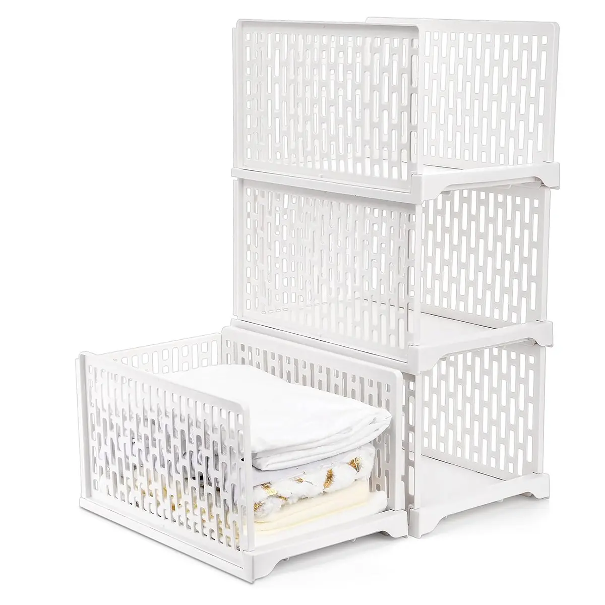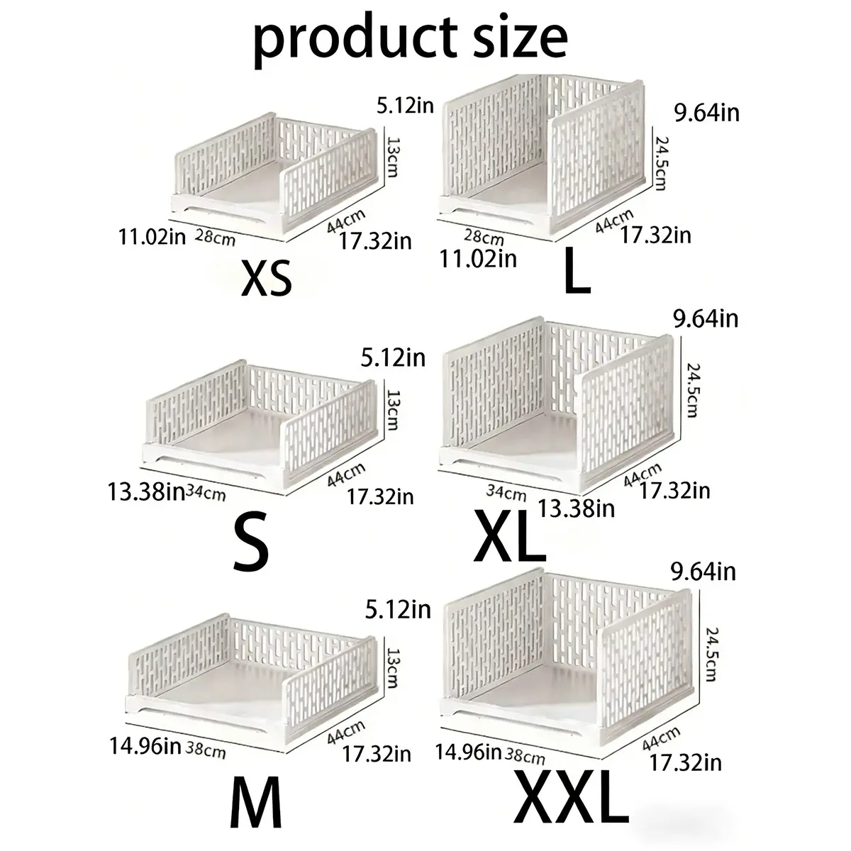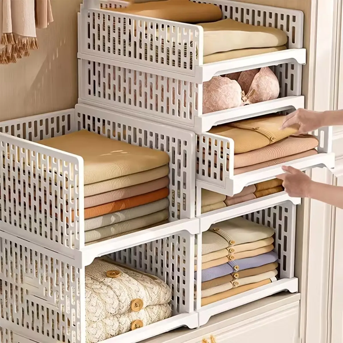 Stackable Plastic Storage Baskets, Foldable Closet Organizer Boxes, Wardrobe Container & Drawer Rack, Suitable for Cabinets, Bedroom, Dormitory, Bathroom, Kitchen, Office, Stackable Design