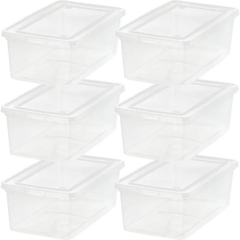 Optimize your home with plastic storage boxes with lids that meet all your organization needsThese multifunctional plastic storage containers and tote bags are perfect for storing various items, from shoes to seasonal goodsTheir stackable design maximizes space utilization.The transparent box with a lid allows you to see the contents at a glance, while the concealed opaque option provides privacy for items you wish to hideWhether you need shoe boxes to store shoes or large storage bins with lids for bulky items, these storage boxes provide reliable and customizable solutionsThese durable storage bins are made from high-quality materials that do not containBPAMade of durable plastic, it keeps your space tidyUse these plastic storage boxes to keep your home organized and tidy;they perfectly combine convenience, durability, and visibilityMade in the USA, something to be proud of