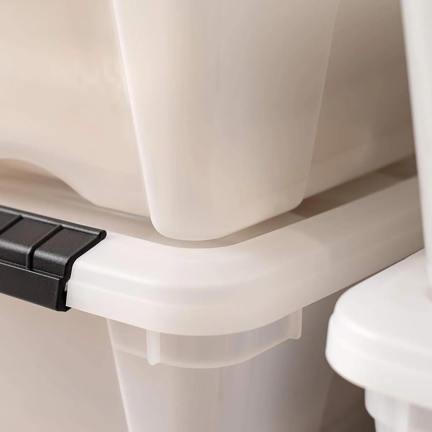 13 Quart Stackable Plastic Storage Bins with Lids, 6 Bags - BPA Free, Made in USA - Hidden Organization Solution, Locking, Durable Nestable Containers, Safety Handles - Pearl Color