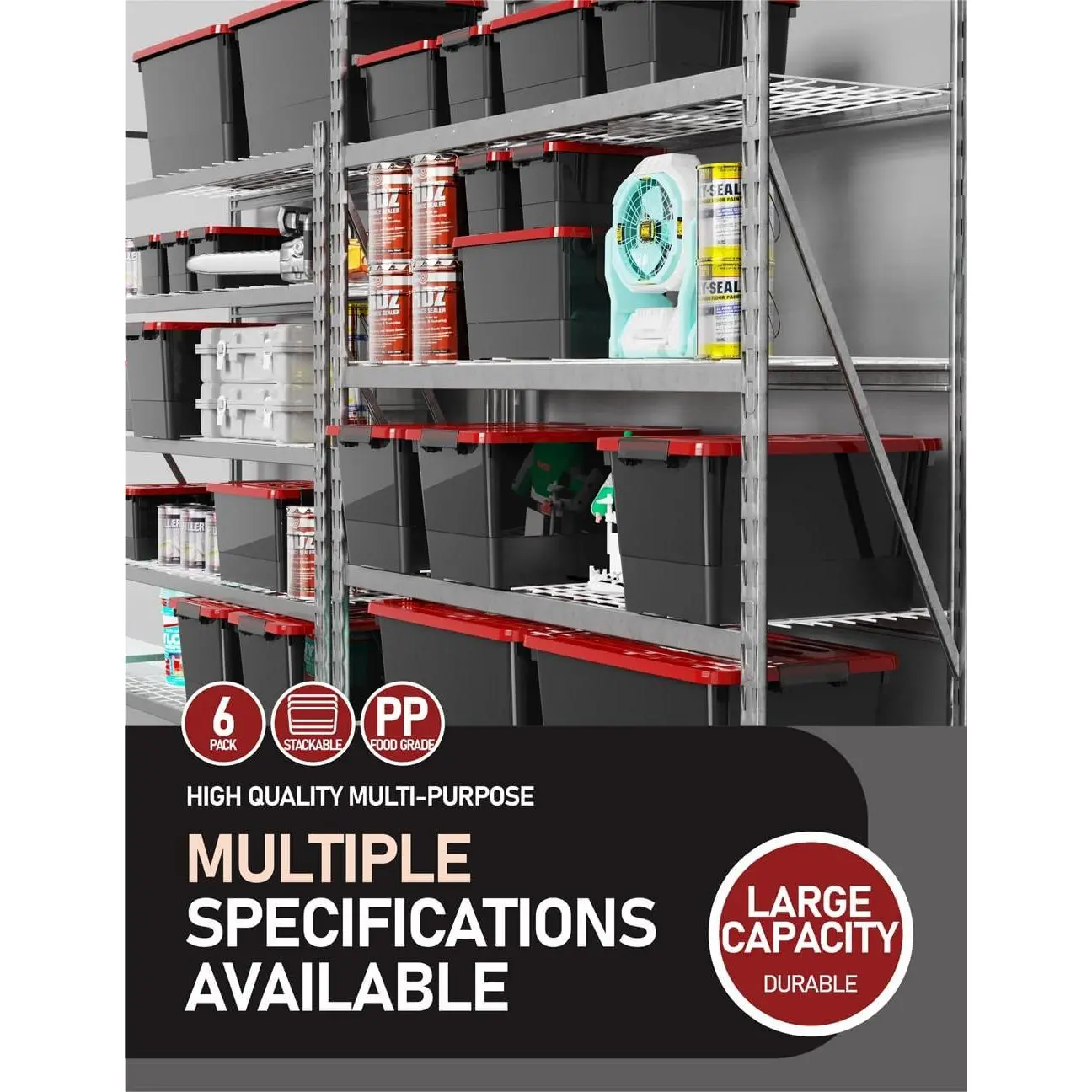 "IDEAL FOR SMALL AREAS: Dimensions of 9.6 x 6.5 x 5.5 inches, our black storage bins with red lid are designed to fit into cramped spaces. You can easily squeeze them into your closet and shelf or a corner in your room.","FREE UP SOME SPACE: Small items can easily turn into large clutter. Our 3.5 quart plastic bins provide a place to stash things like ornaments, pigment, painting tools, part and accessories. Create more space in your home in no time!","BUILT TO LAST: Our black organizing box are made to endure. Its sturdy plastic material can withstand repeated use, keeping spaces organized over time. Secure latches provide added protection.","MINIMALIST DESIGN: Stackable container comes with a red lid, combined with black latches/handle and box body, make it appear low-key and elegant. Make it stand out no matter where it is placed.","BETTER PRIVACY: The black opaque storage bin can better protect personal privacy. You can confidently store some personal privacy items inside without worrying about being easily recognized by others."