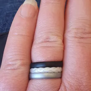 Love these rings, super comfortable and look quite pretty, the white is kinda metallic, not sparkly like the photo, but very pretty still. Very glad I got them now!