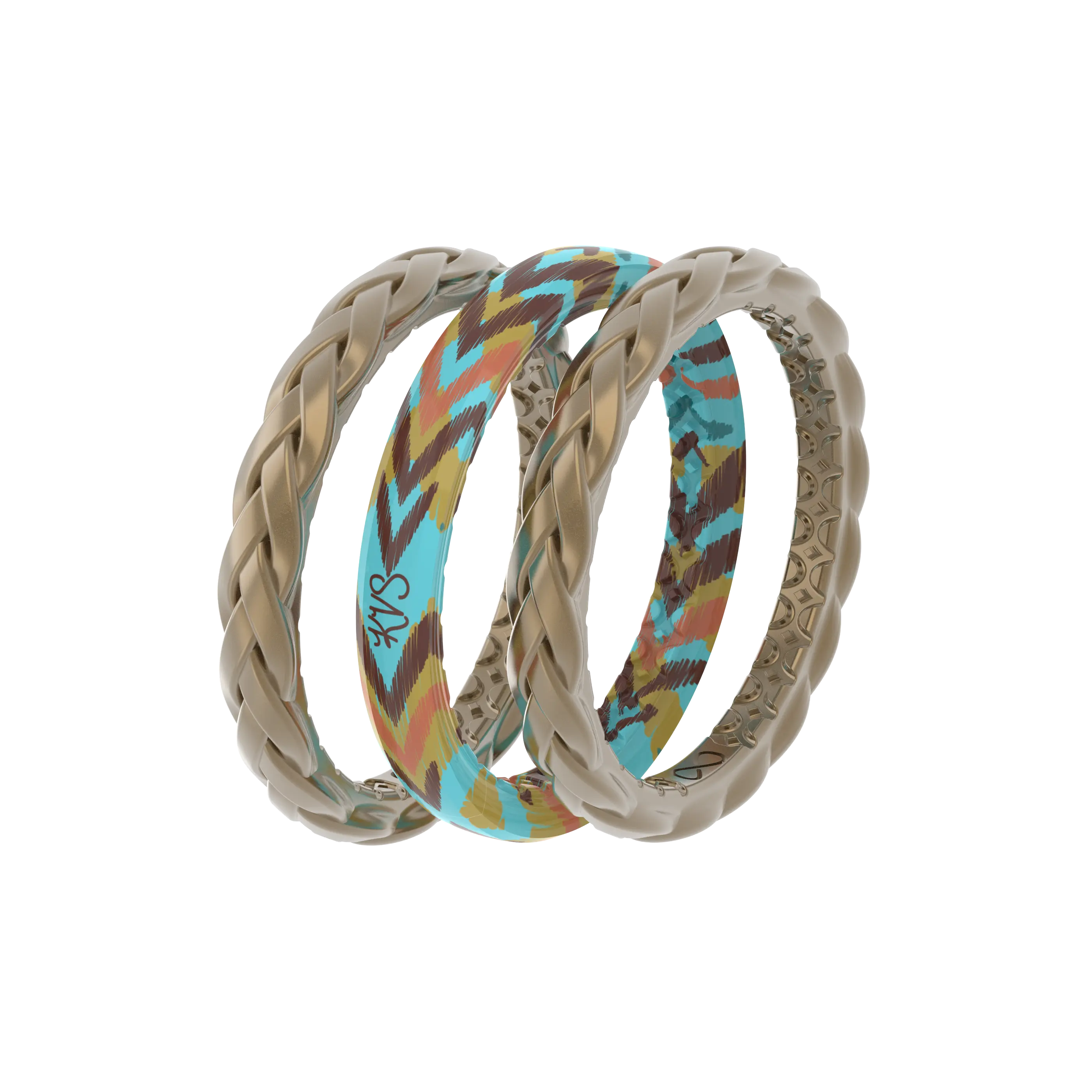 Love the comfort and versatility of this stackable set. Bands are not too thick and 3 bands together is still very comfortable! Great company to deal with, excellent customer service too!