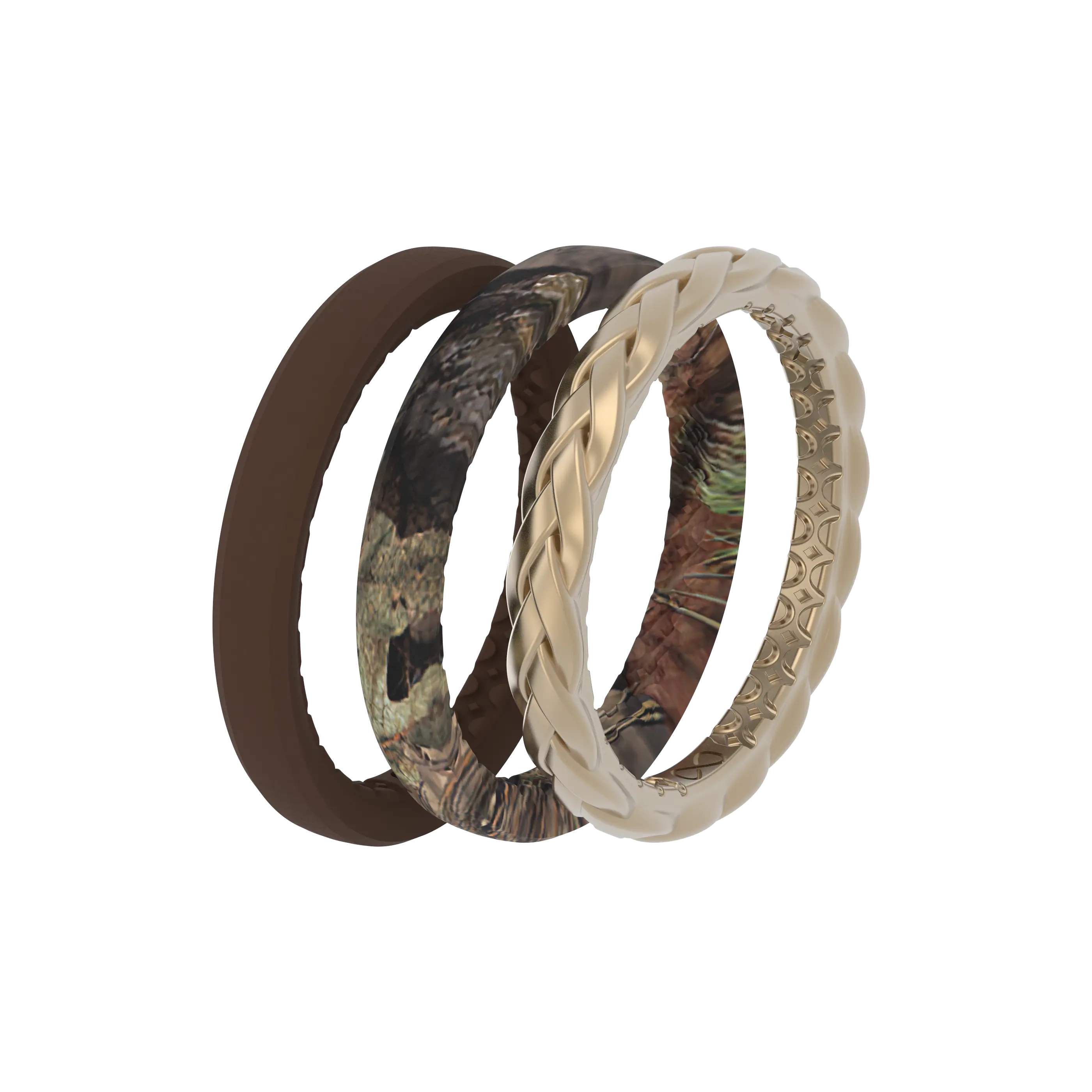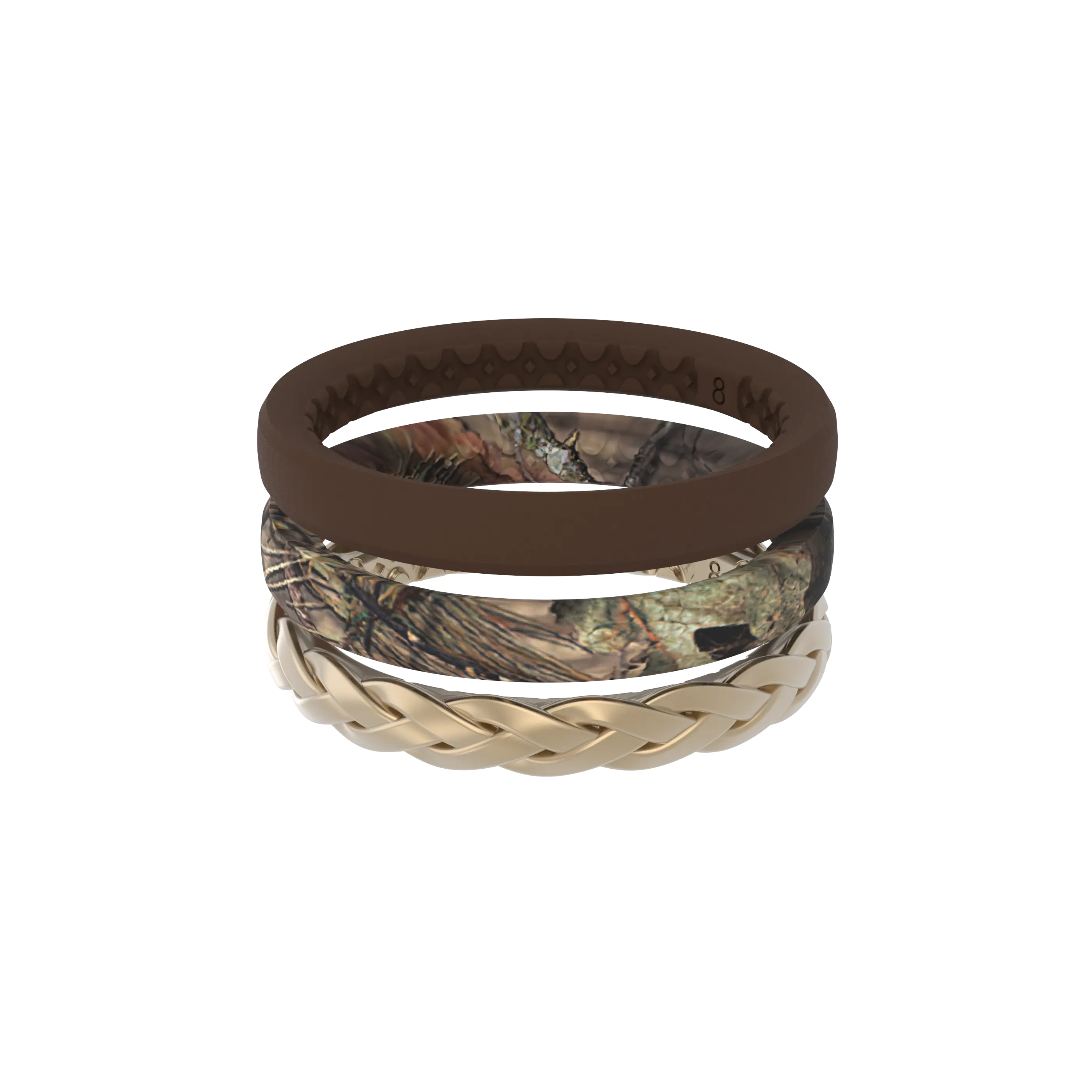 Love these rings. I wish the camo one was a bit stretchier like the other bands. But it looks so pretty on my hand and I get a ton of compliments.