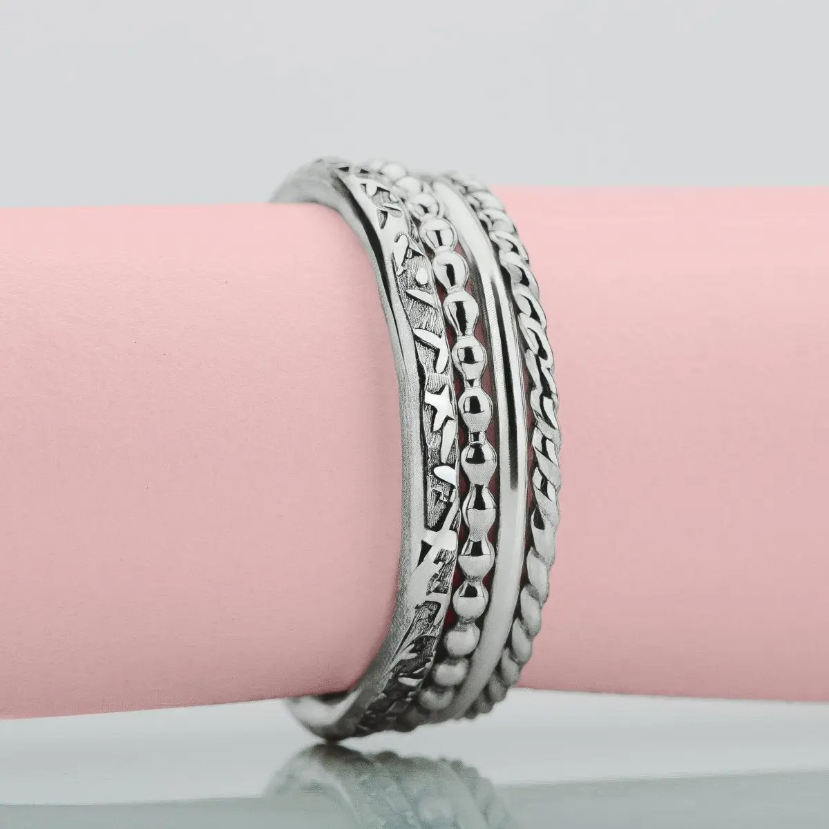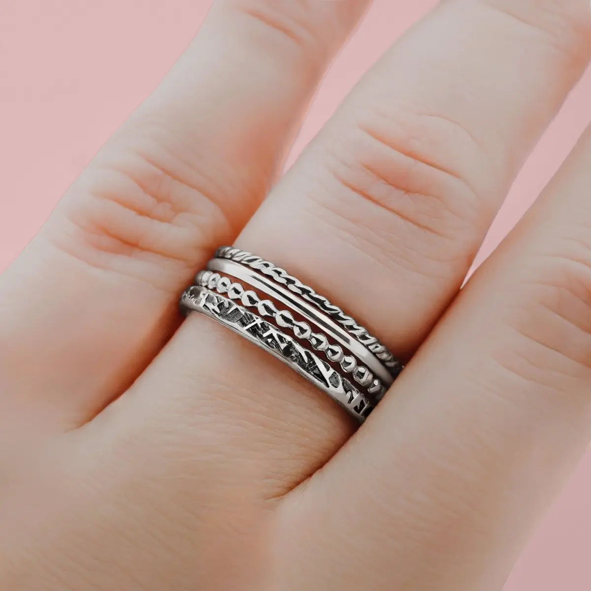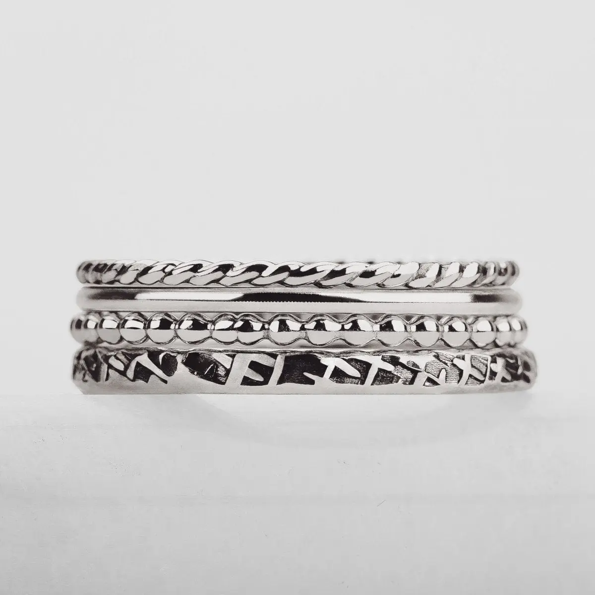 The Luna Stack is a beautiful set of four thin, stackable rings. Each ring has a different texture, and they are available in gold, rose gold, or silver. They are perfect for adding a touch of glamour to any outfit, and they can be worn together or separately. The USA size range is 4-12, making them a great option for people with a variety of different finger sizes. They make a great gift for any occasion, and they are sure to be cherished for years to come.